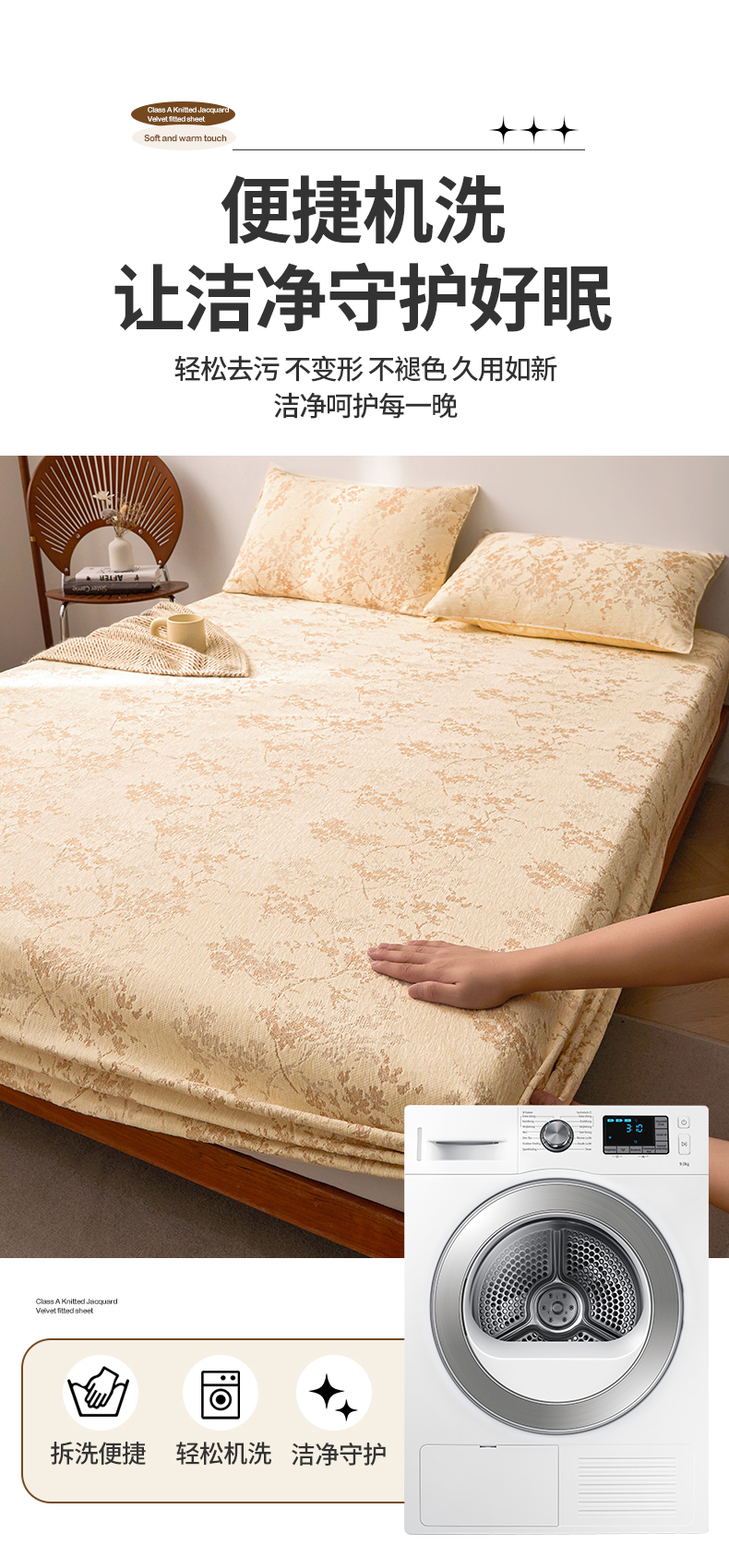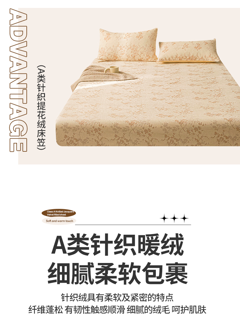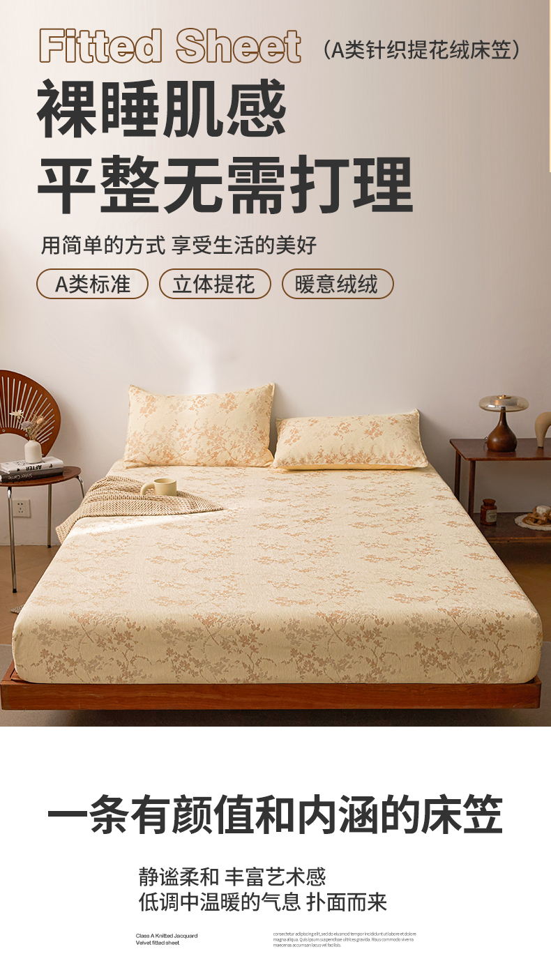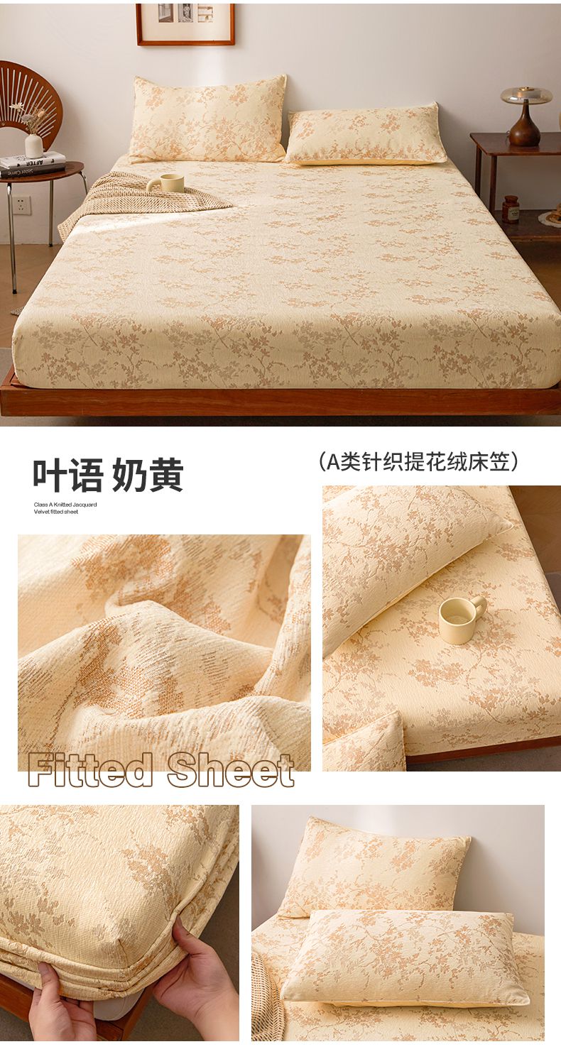 商品名称:2024新款针织提花绒床笠-叶语 叶语 奶黄