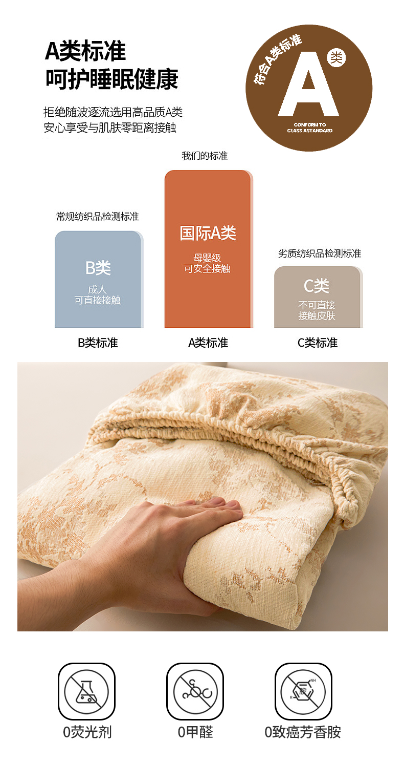(总)伊人坊 2025新款A类全棉水洗棉六面全包夹棉床笠床垫保护套拉链床笠,云朵白,浅米驼,青果绿,时尚灰,天空蓝,樱花粉