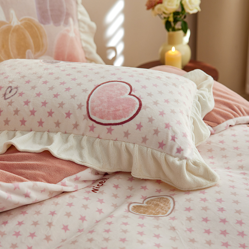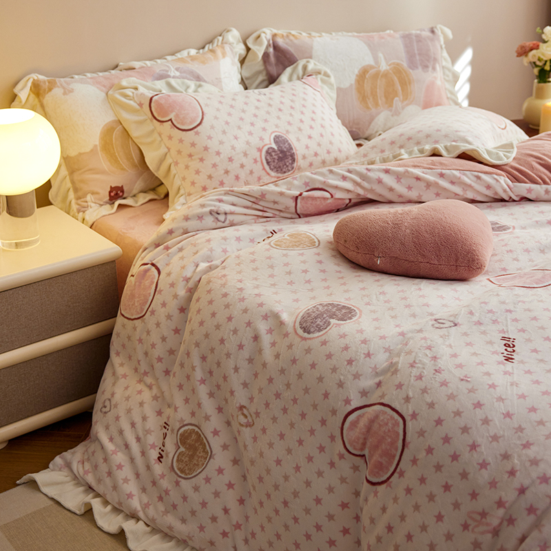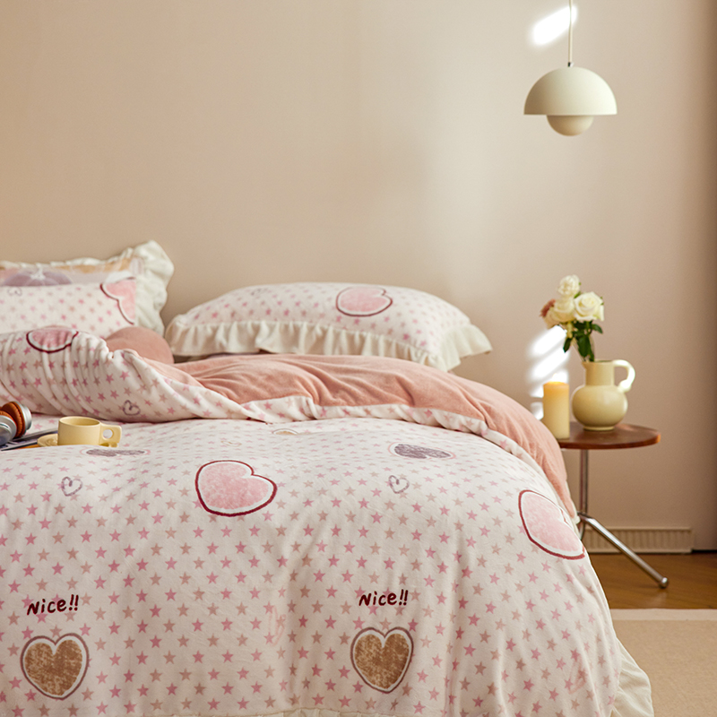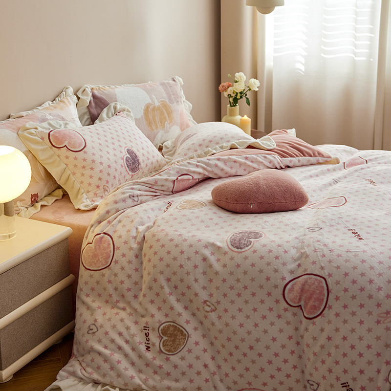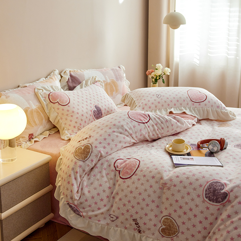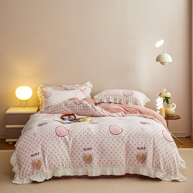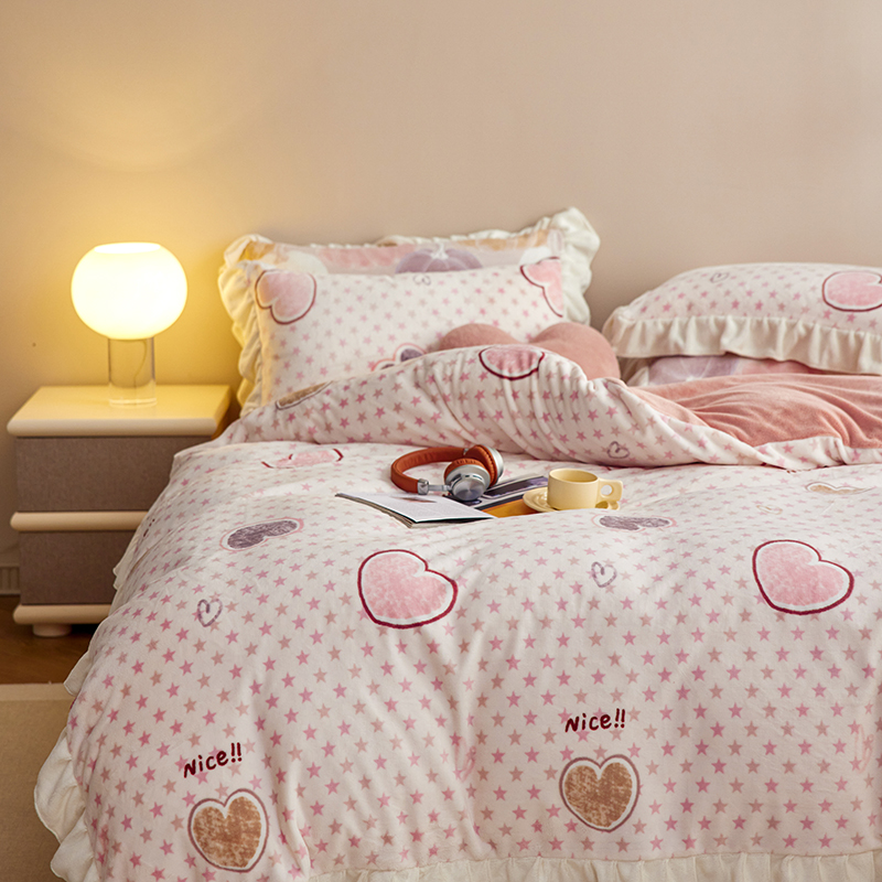 商品名称:2024新款240g全消光印花花边绒四件套 星心