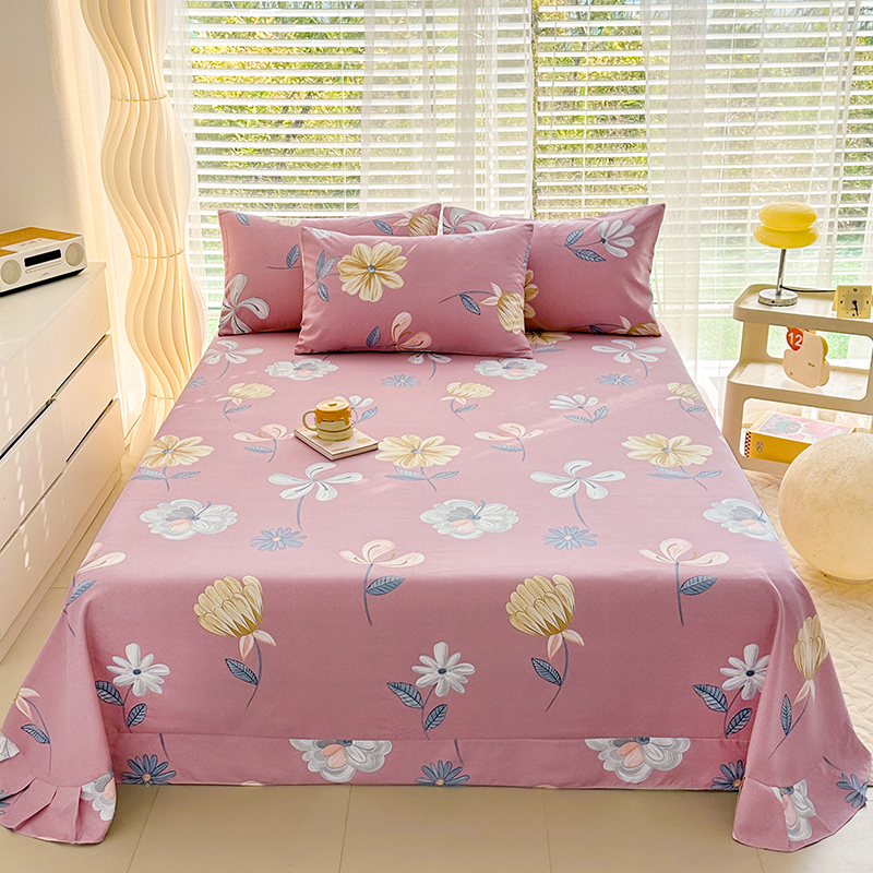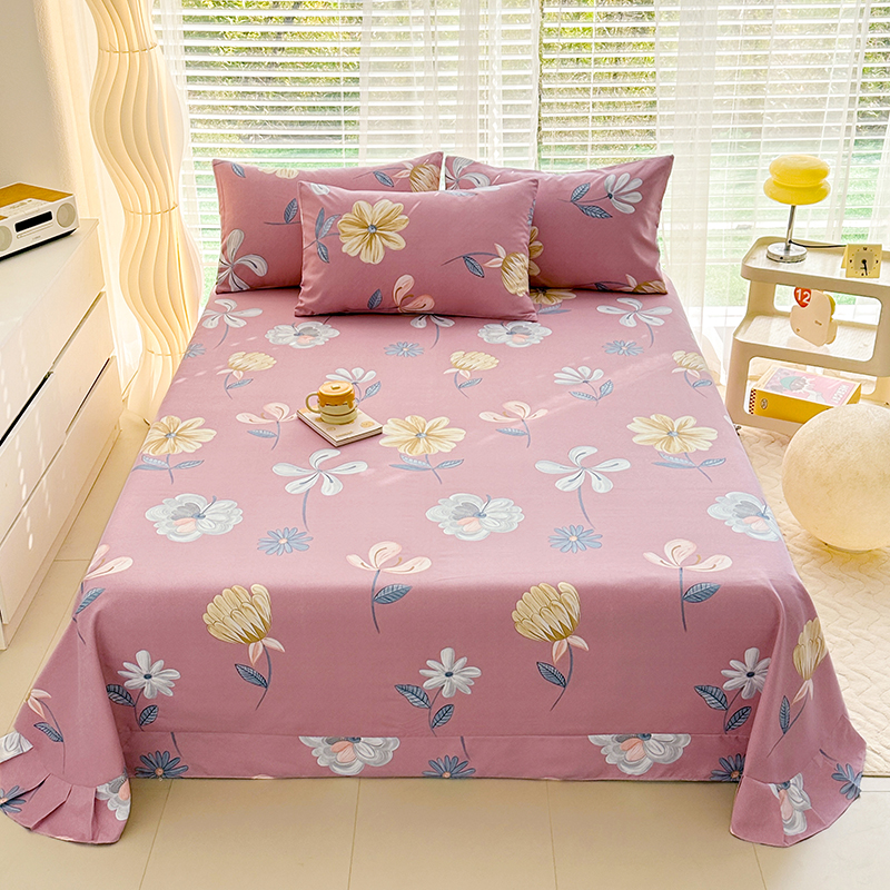 • 91家纺网 家纺一手货源 找家纺 家贝爱 2024新款加厚原棉磨毛花边床单 花舞悠然