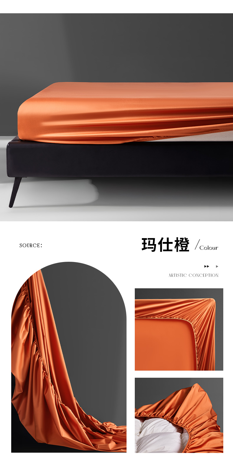 商品名称:轩和家居 2024新款A类70支长绒棉床笠 玛仕橙