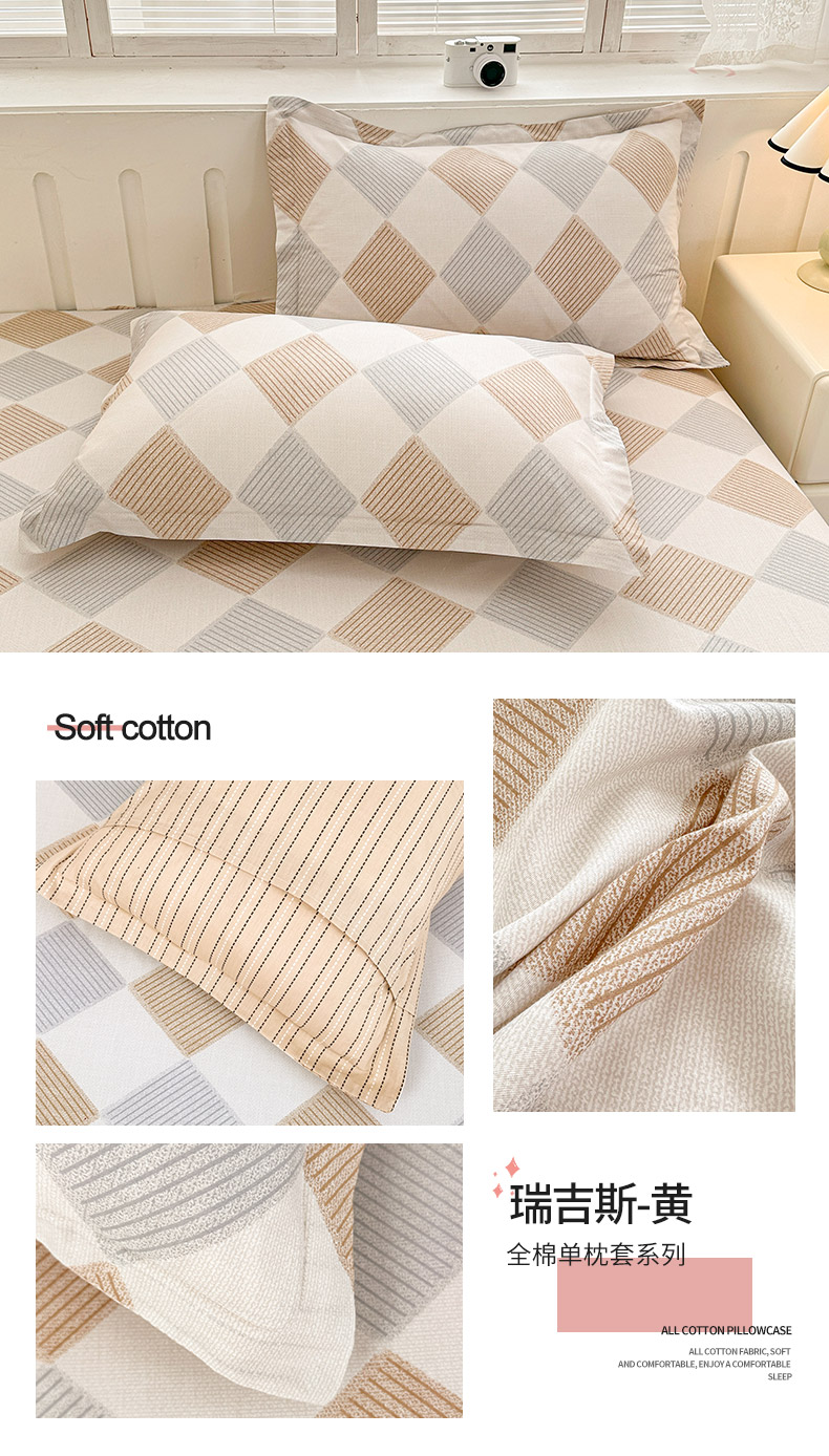 绵庭家纺 2025新款全棉印花单枕套系列 瑞吉斯-黄