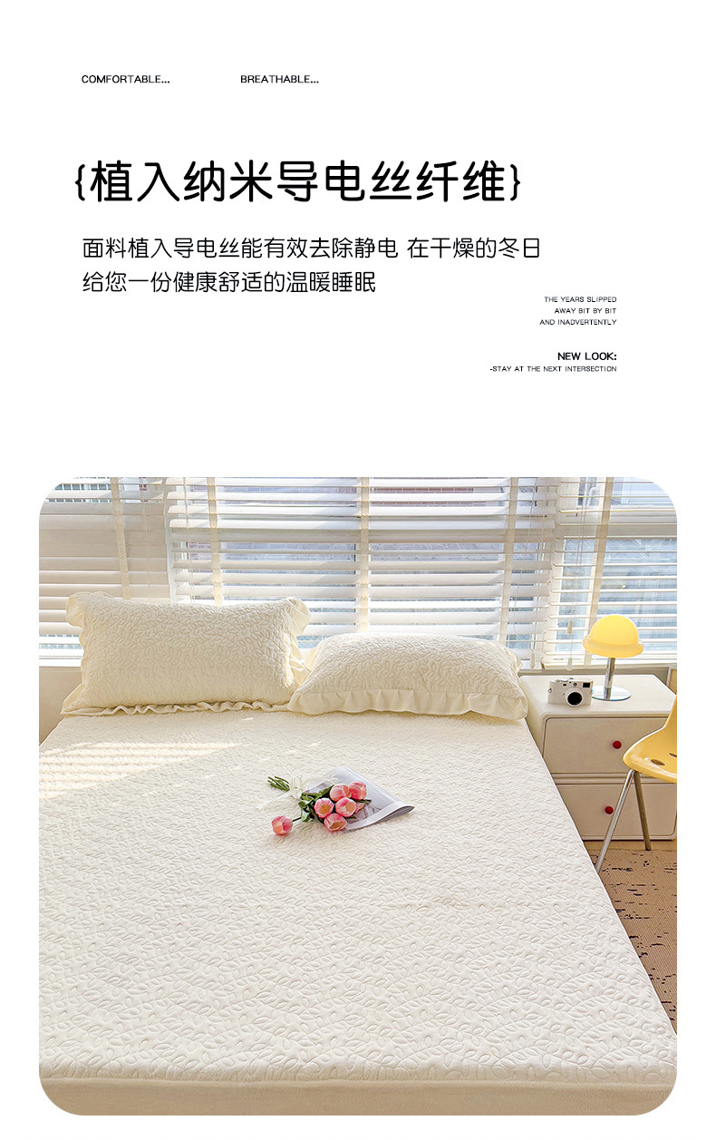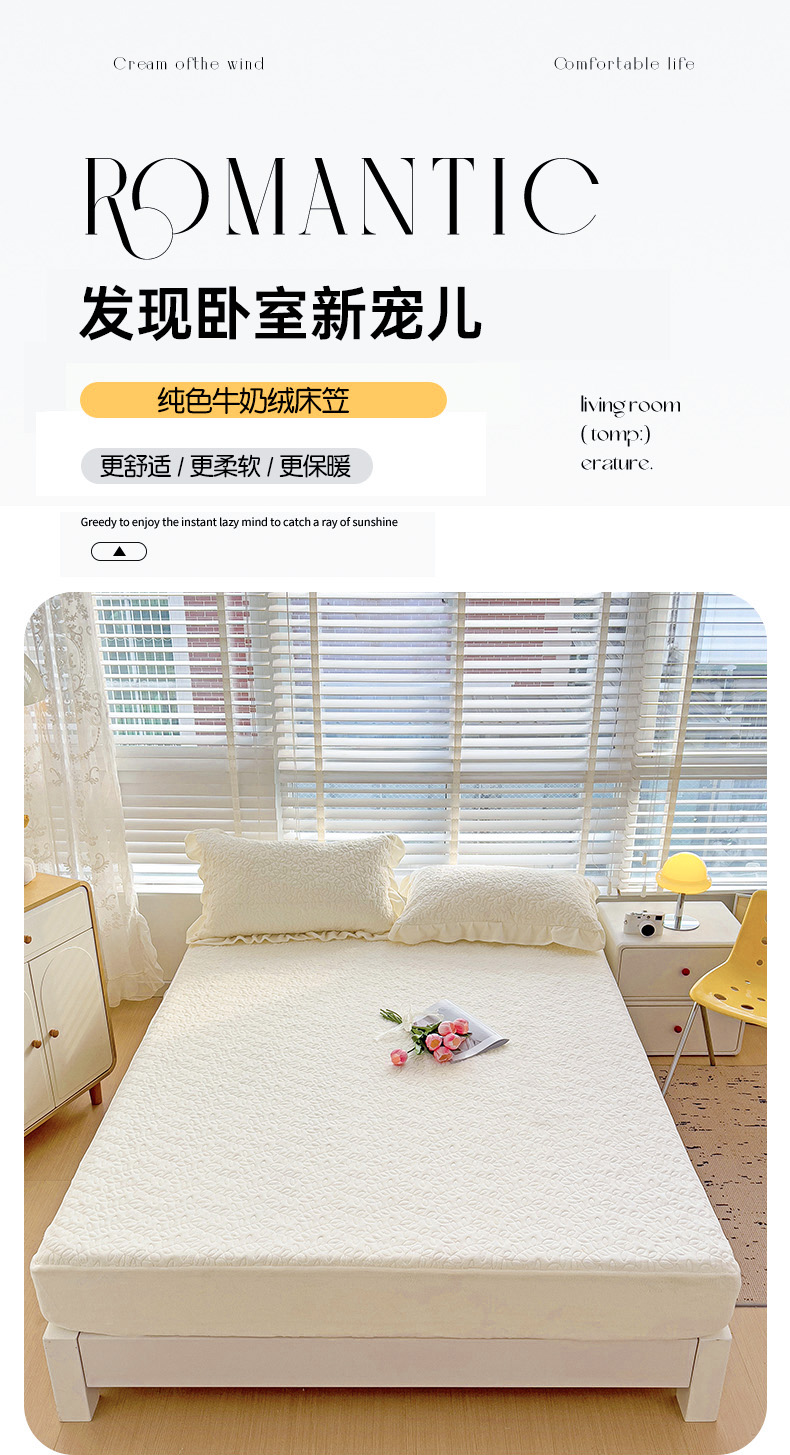 商品名称:漫时光 2025新款230g纯色牛奶绒夹棉床笠 床笠款罗曼-奶白