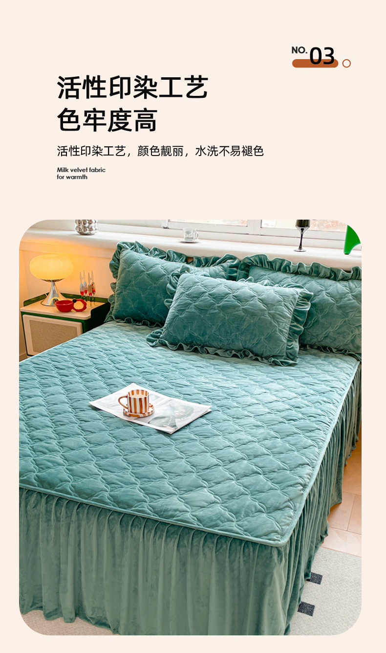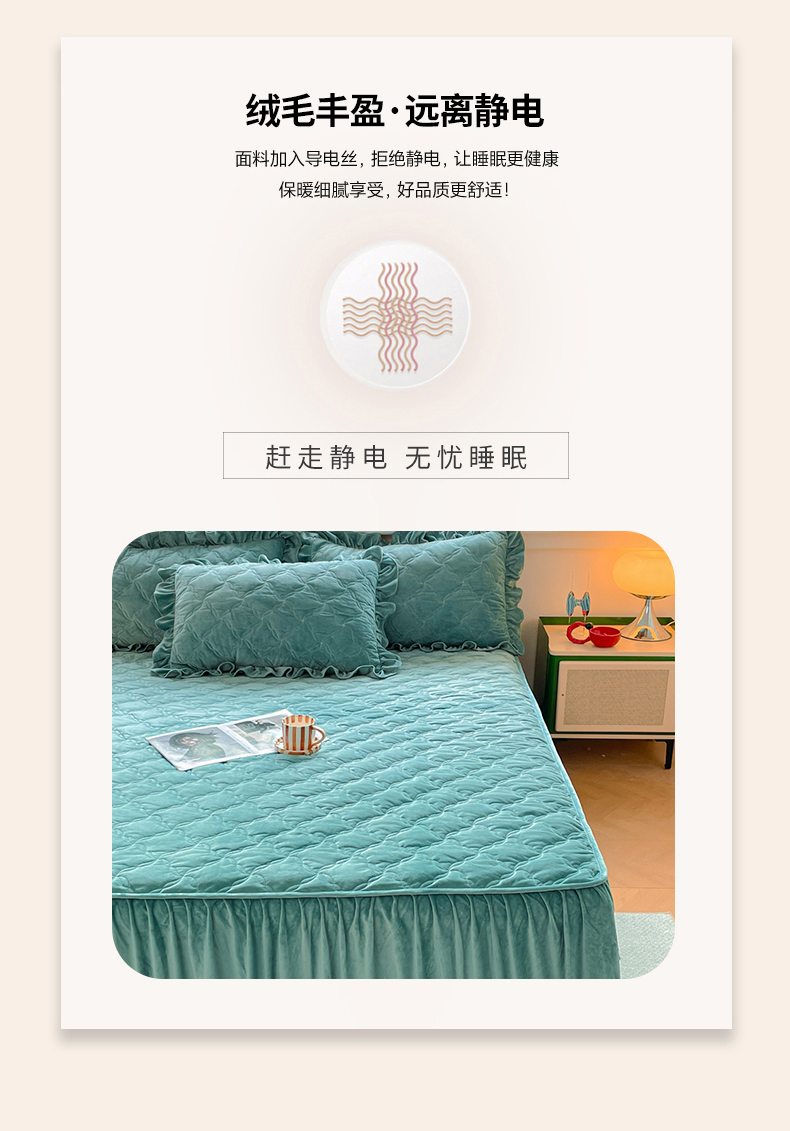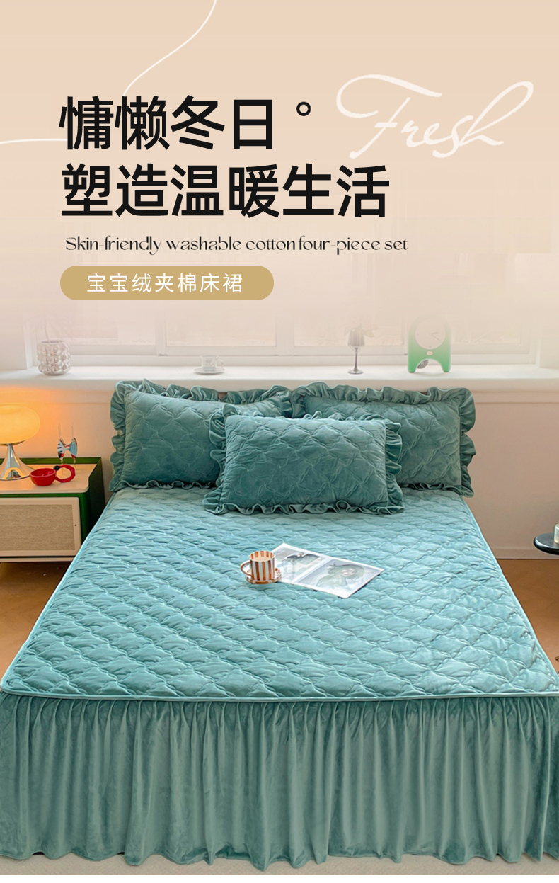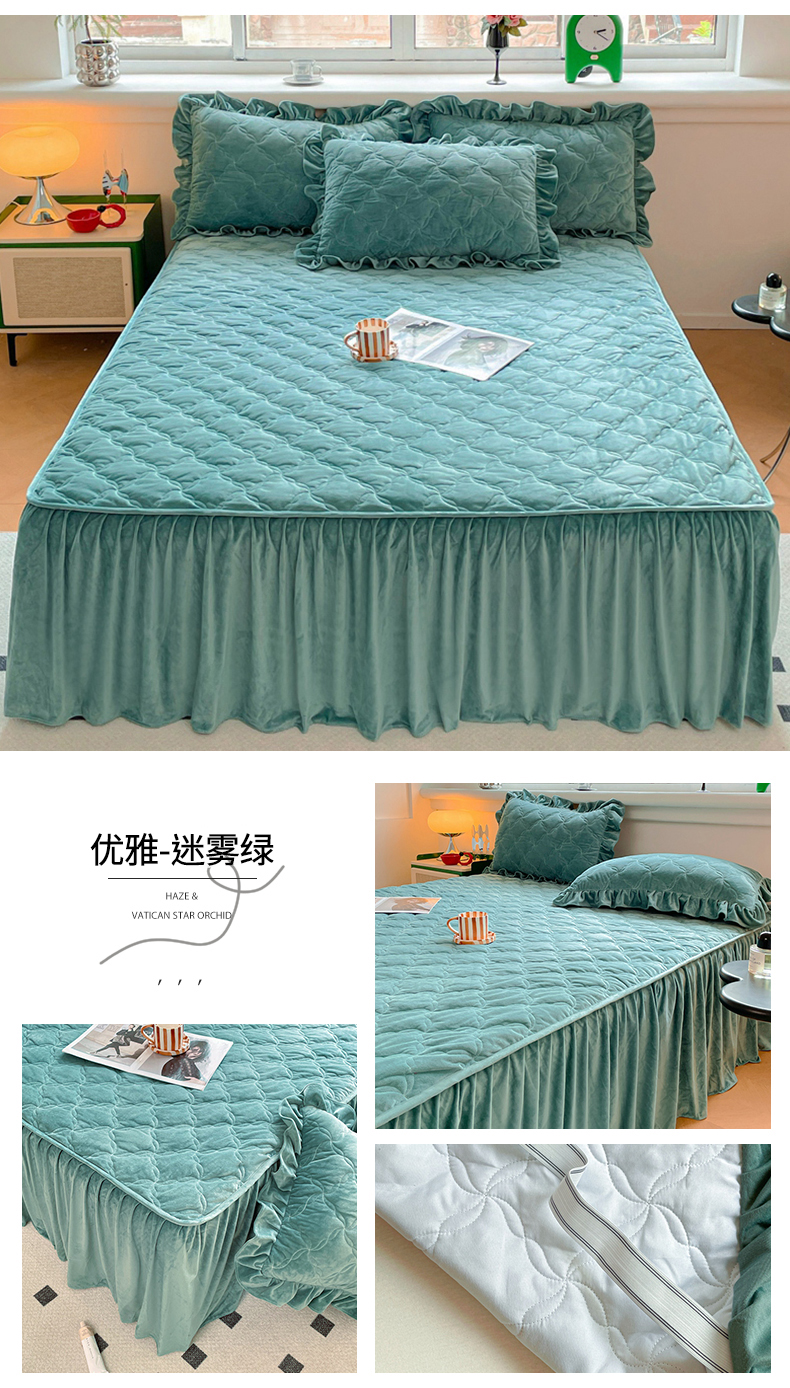 商品名称:忘忧草 2024新款宝宝绒夹棉床裙-优雅 优雅-迷雾绿