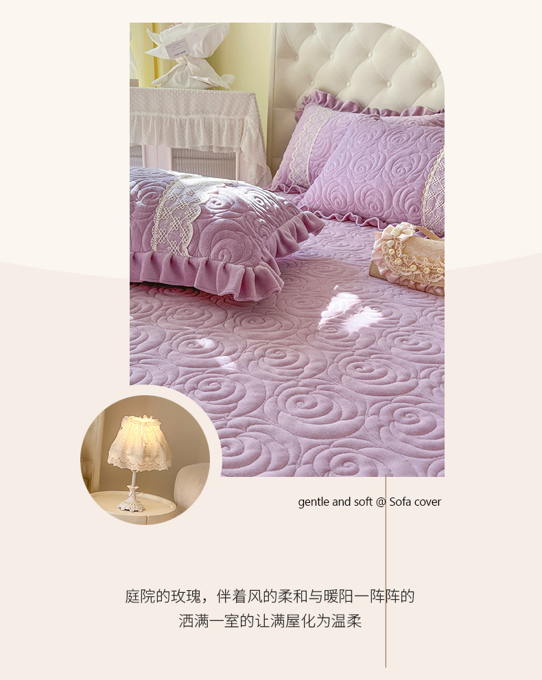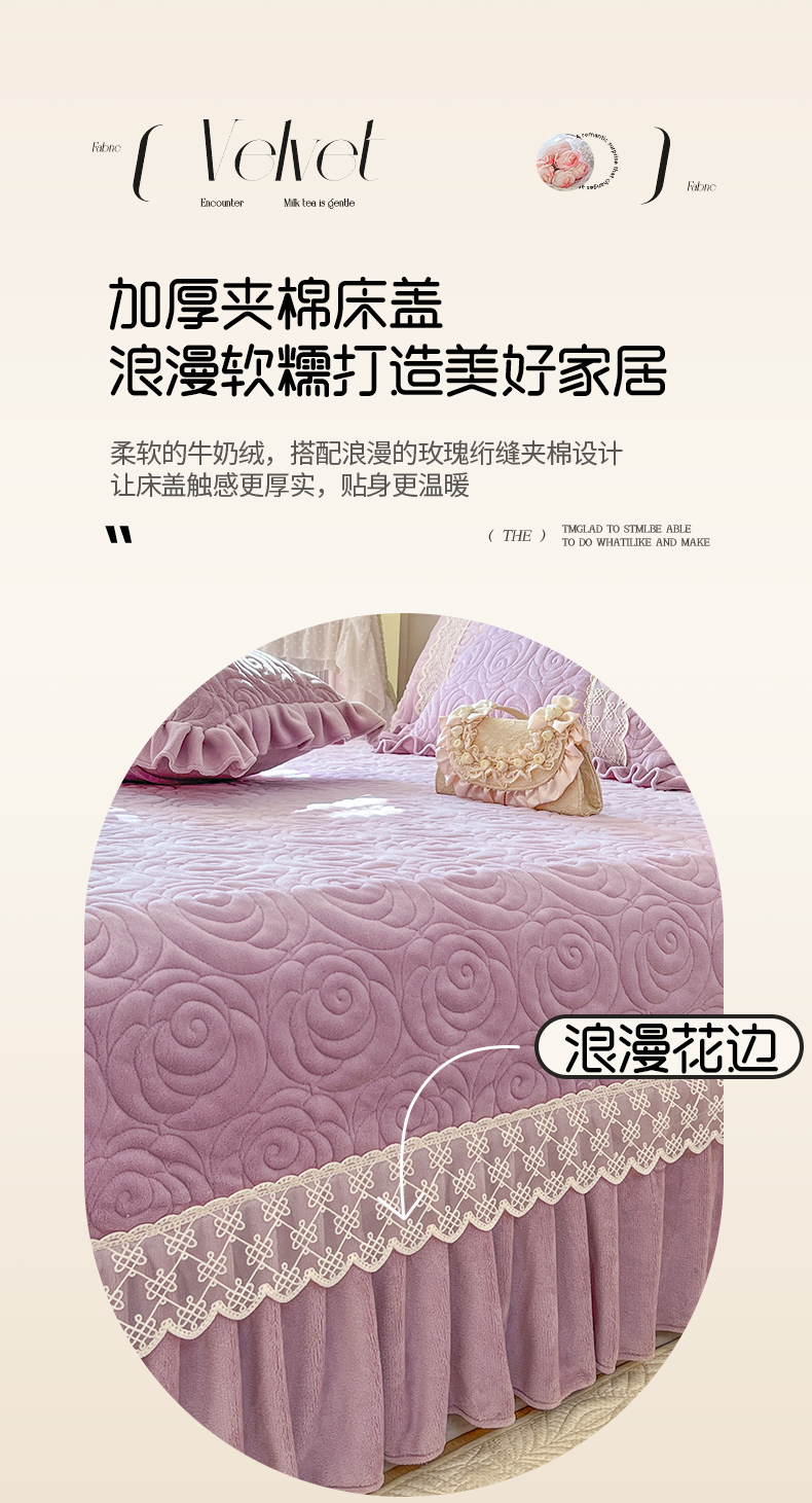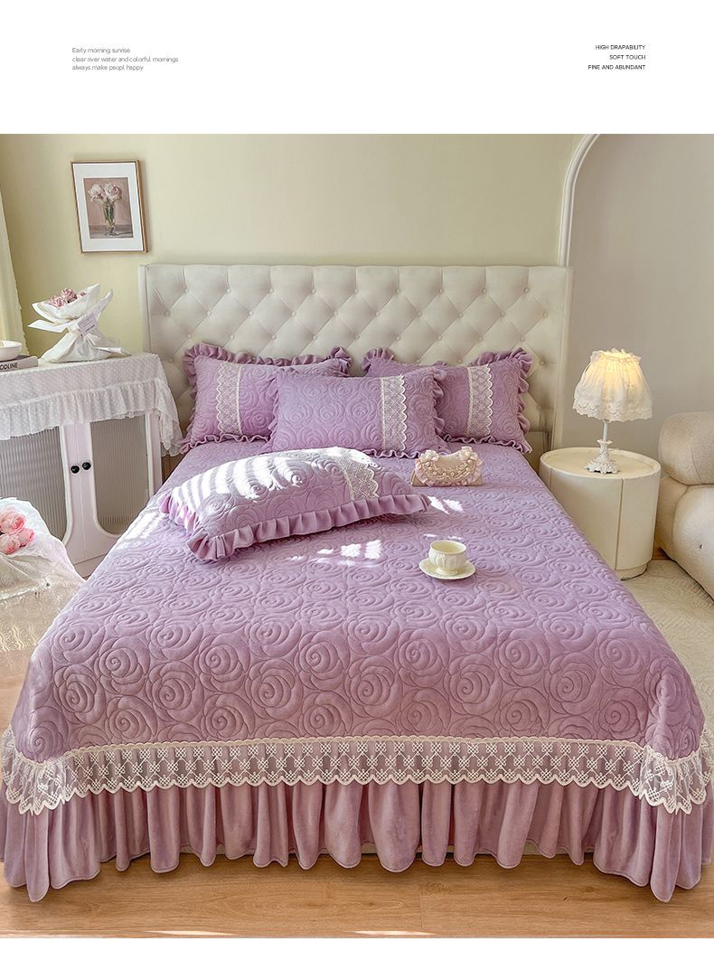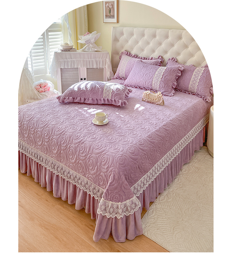 商品名称:恋尚 2024新款高克重牛奶绒夹棉蕾丝花边单床盖--朵拉 朵拉-香芋紫