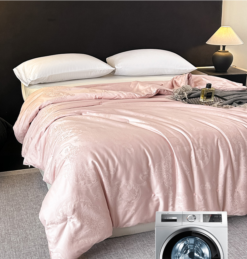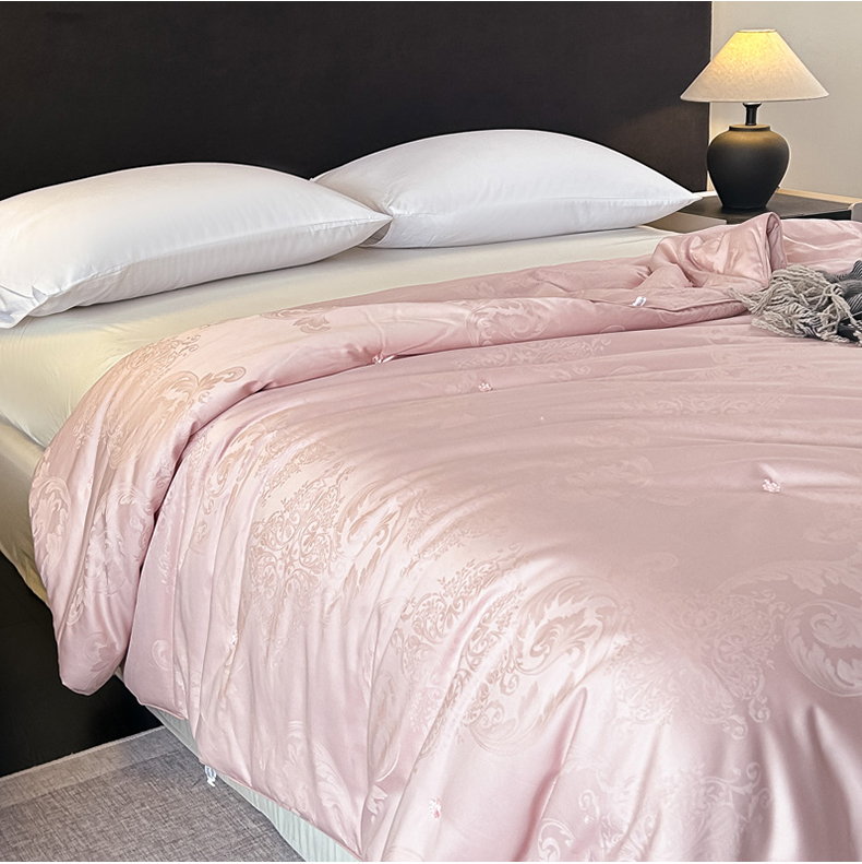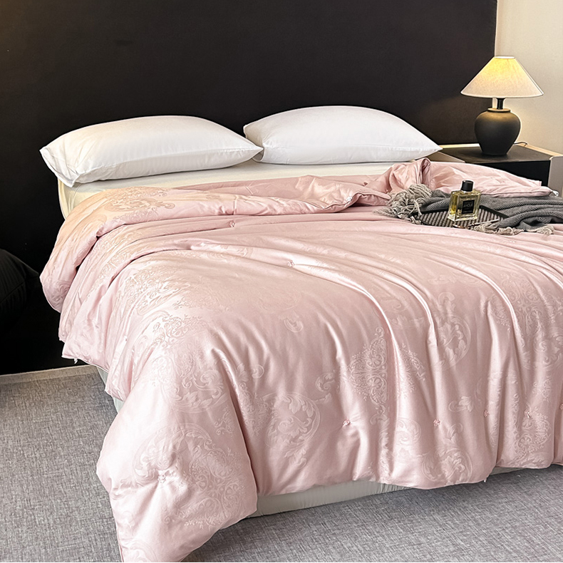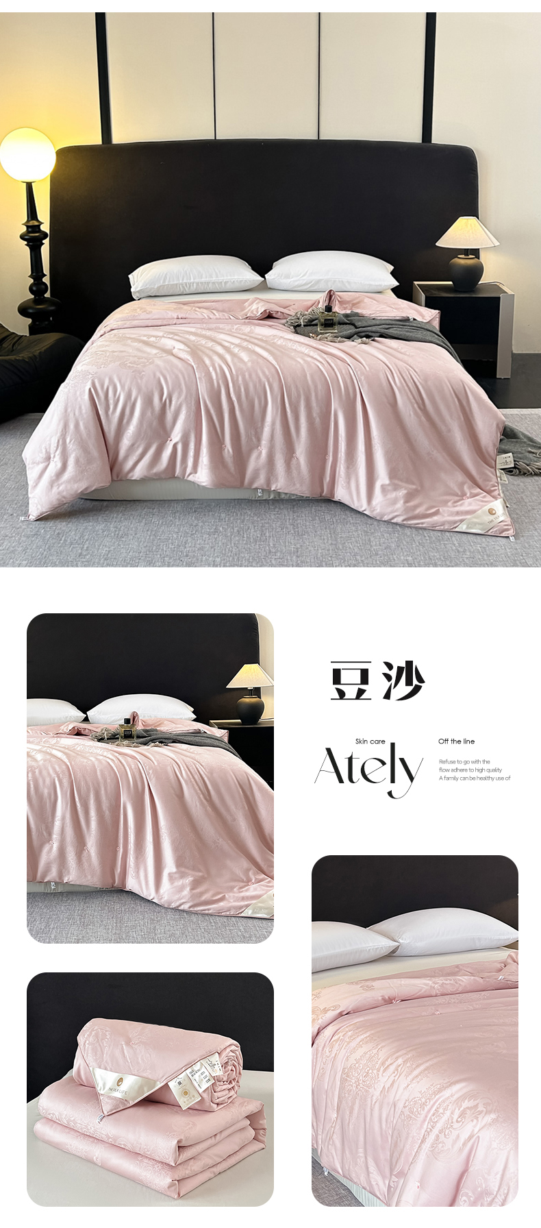 (总)龙图 2025新款贡缎提花春秋被冬被空调被夏被,白色,粉色,灰色