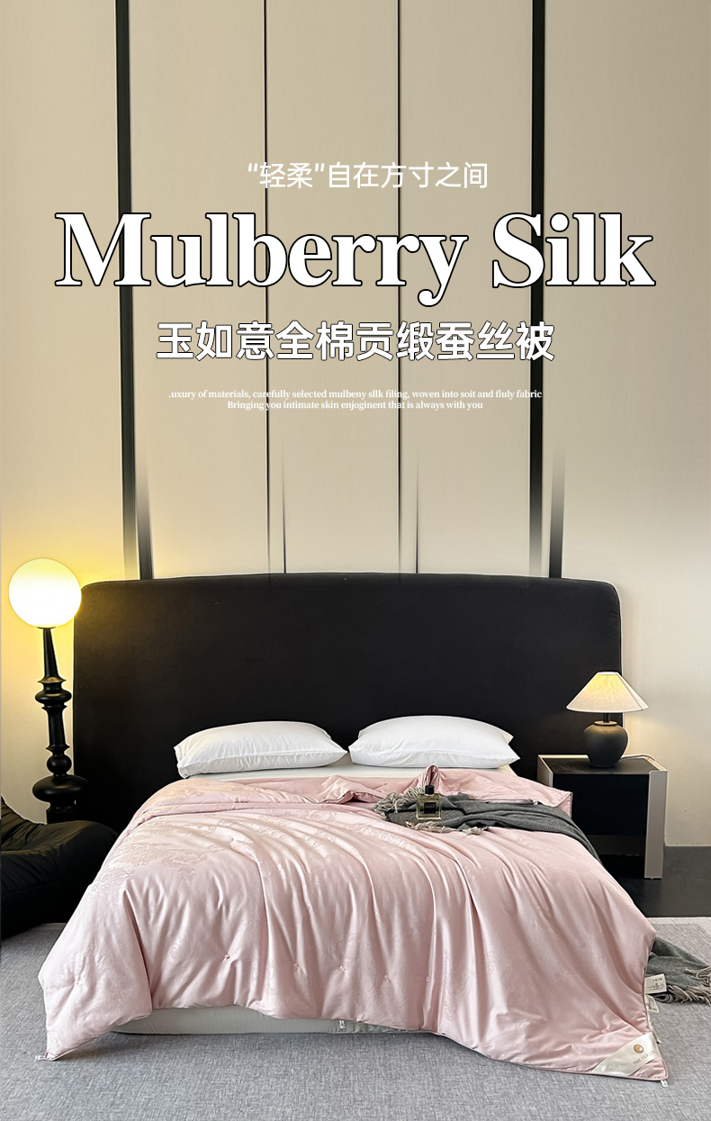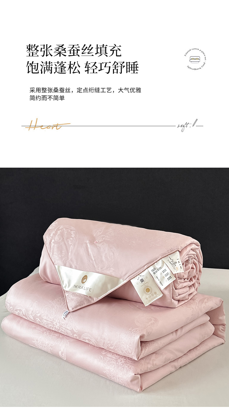 (总)龙图家纺 2025新款80支全棉贡缎蚕丝被空调被春秋被冬被子母被-玉如意,玉如意-白色,玉如意-粉色,玉如意-灰色,玉如意-咖色