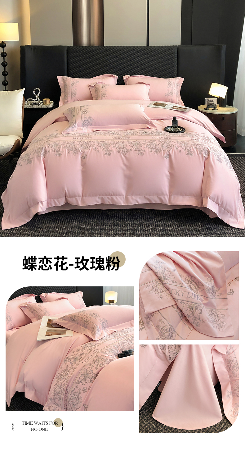 商品名称:家居1号家纺 2024新款加厚磨毛四件套-蝶恋花系列 蝶恋花-玫瑰粉