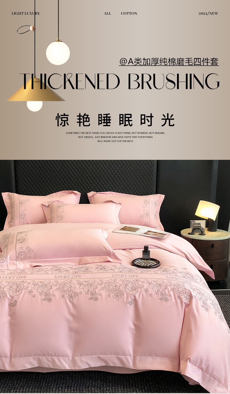 (总)家居1号家纺 2025新款全消光牛奶绒刺绣圣玛丽四件套,圣玛丽-粉豆沙,圣玛丽-果绿,圣玛丽-晴蓝,圣玛丽-绅士灰,圣玛丽-香槟金