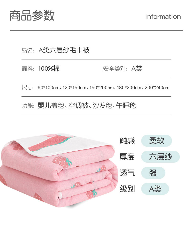 商品名称:(总)佰丝居 2023新款全棉A类六层纱布毛巾被系列2