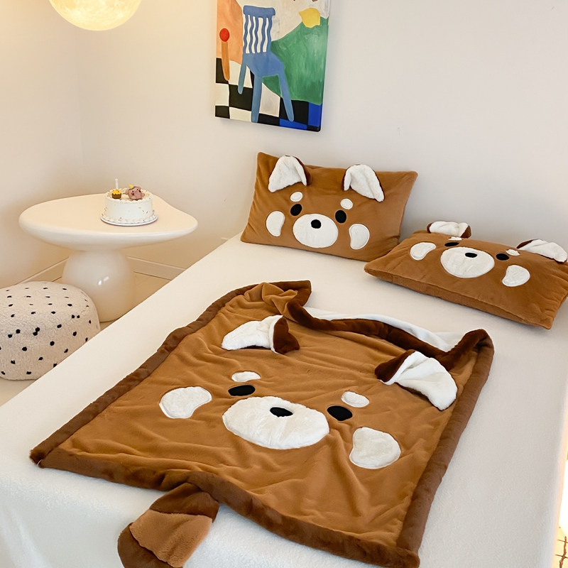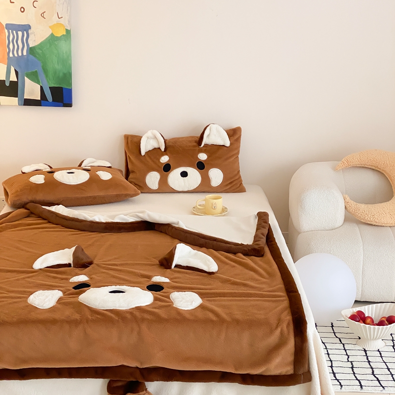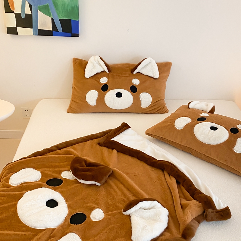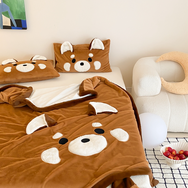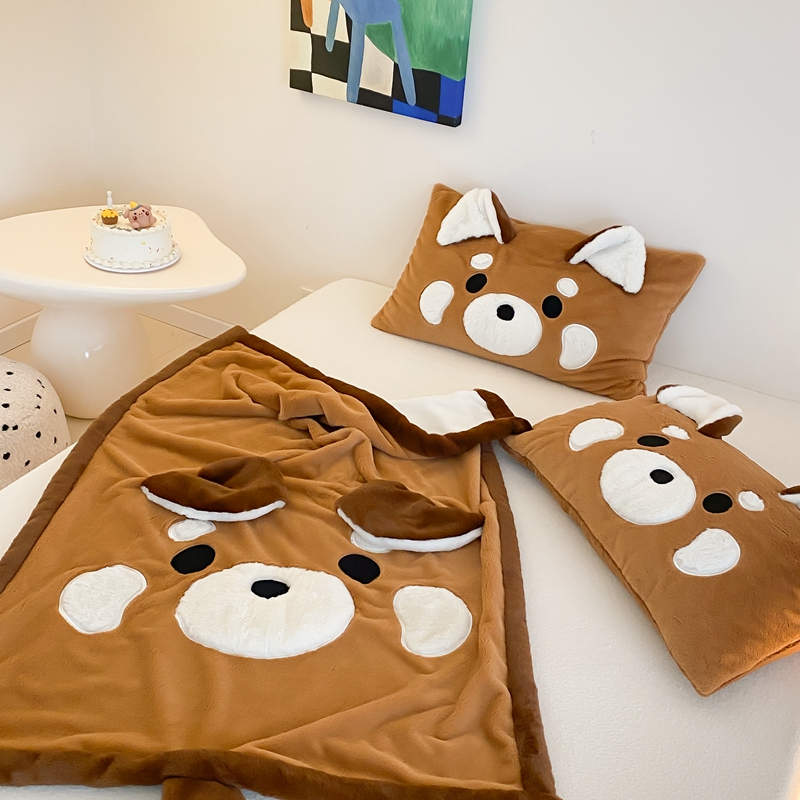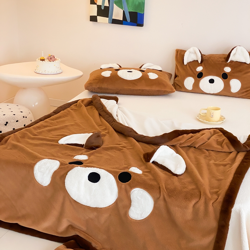 黛舒家居 2024新款三利欧贴布绣花毛毯浣熊