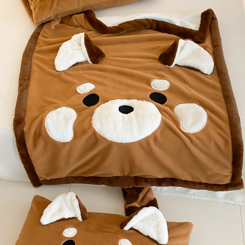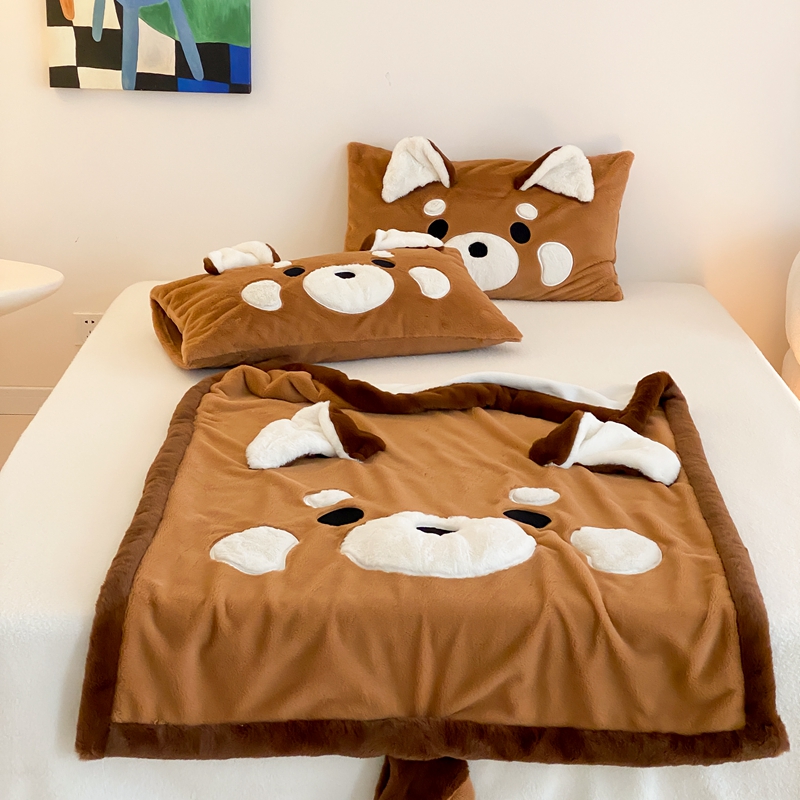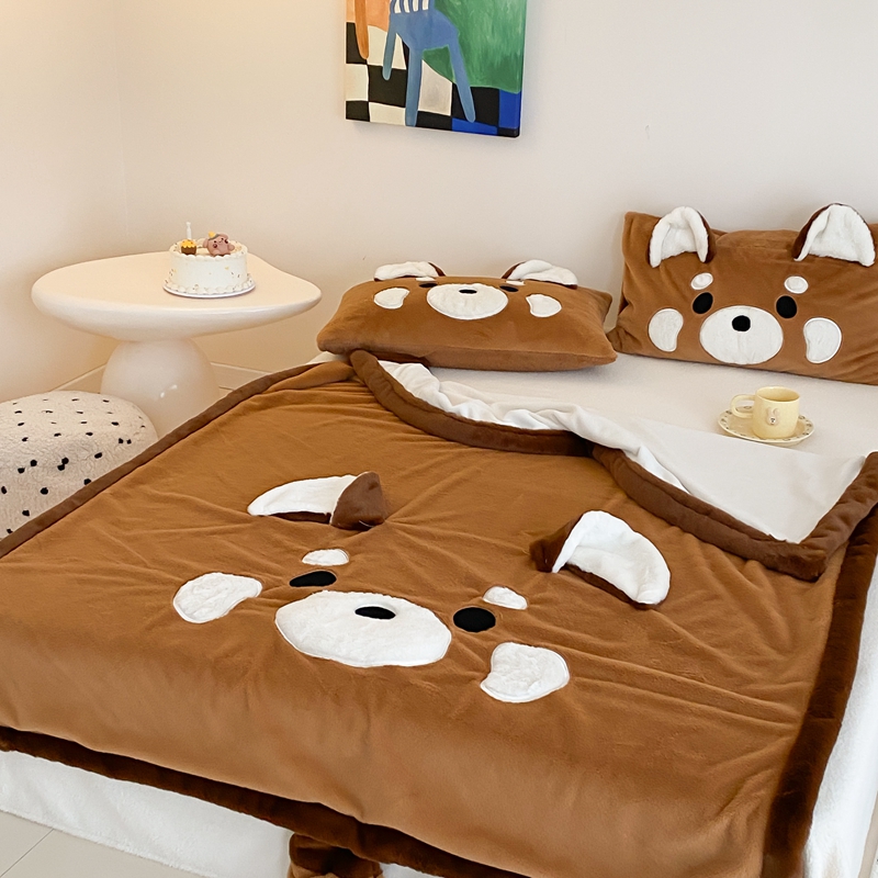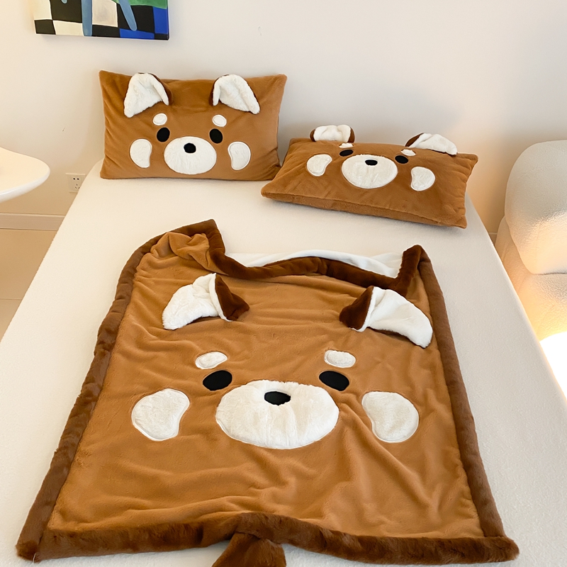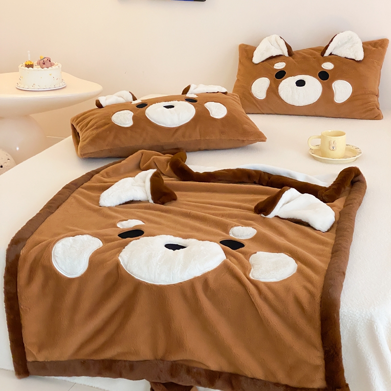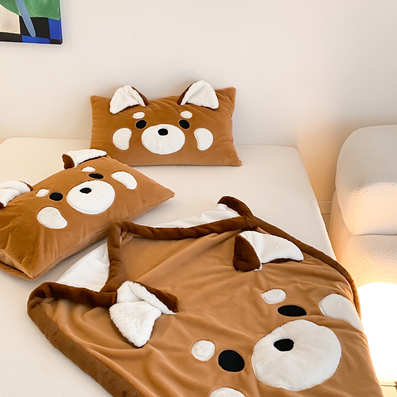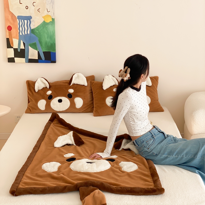 黛舒家居 2024新款三利欧贴布绣花毛毯浣熊