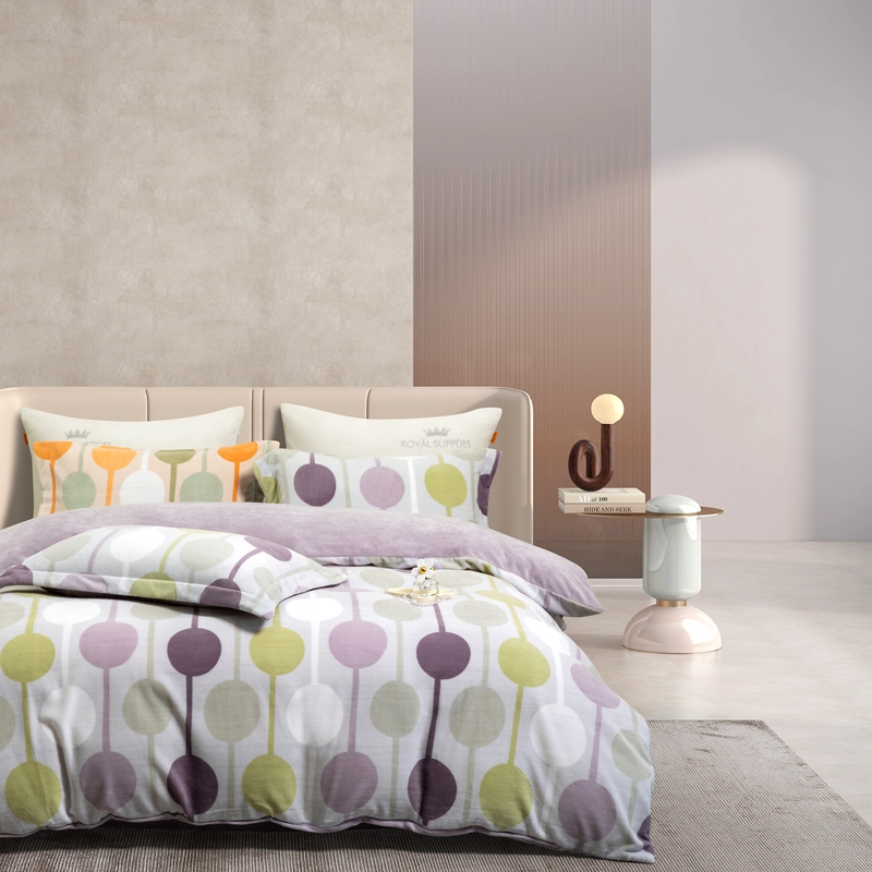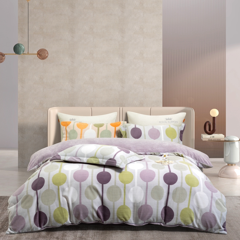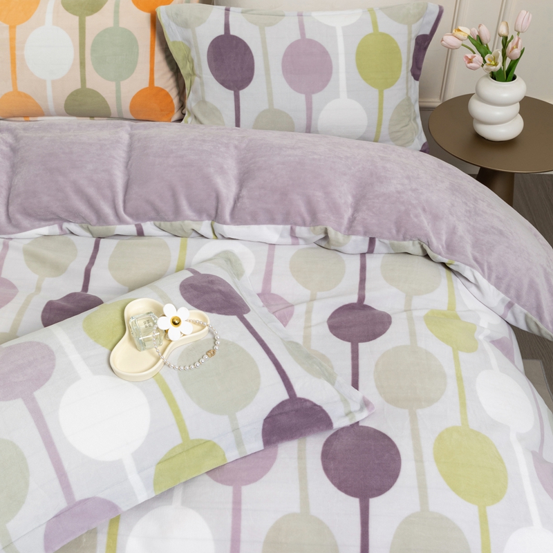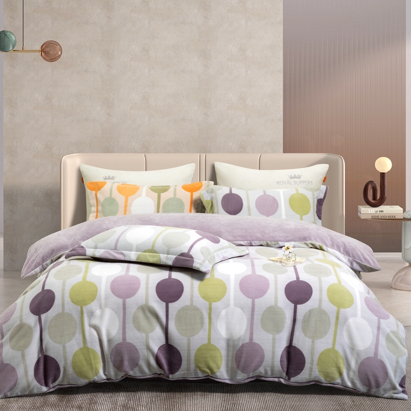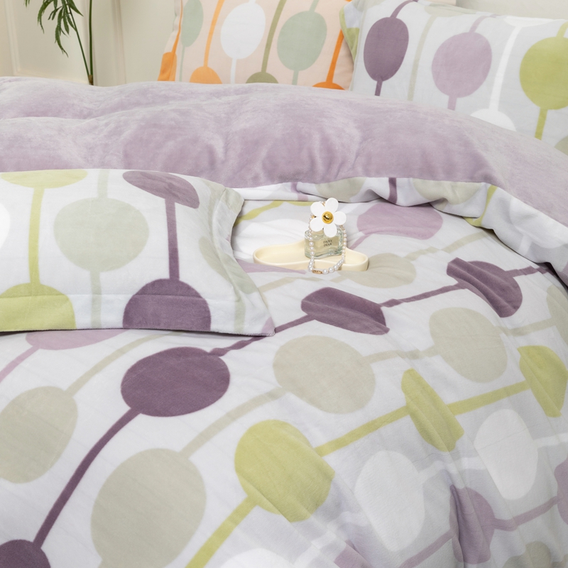 商品名称:宜家坊 2024新款加厚保暖印花牛奶绒四件套 迷境-灰紫