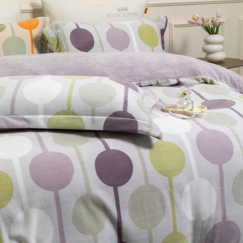宜家坊 2024新款加厚保暖印花牛奶绒四件套 迷境-灰紫