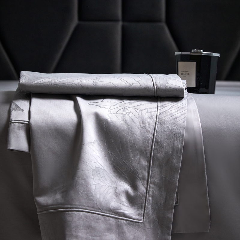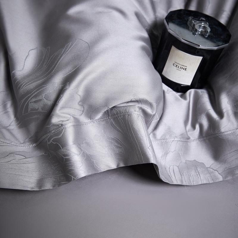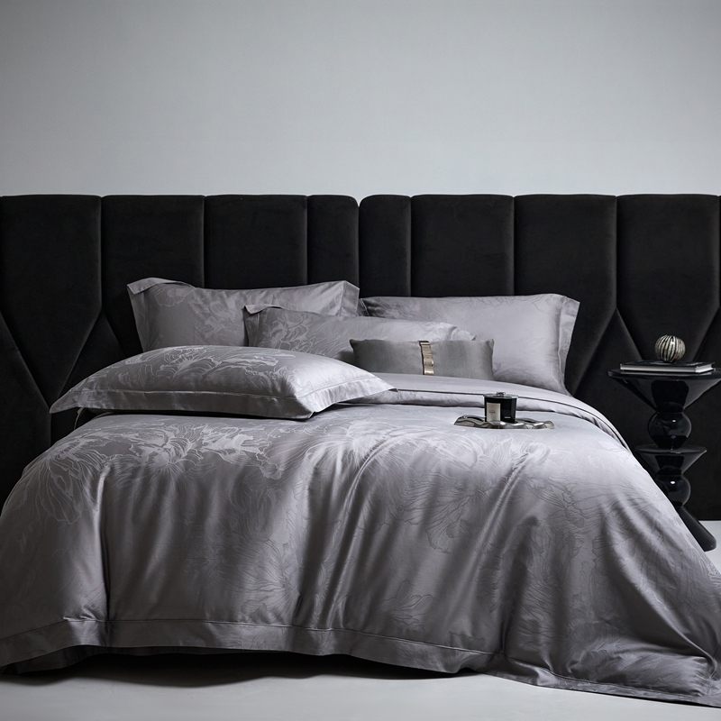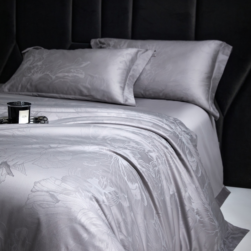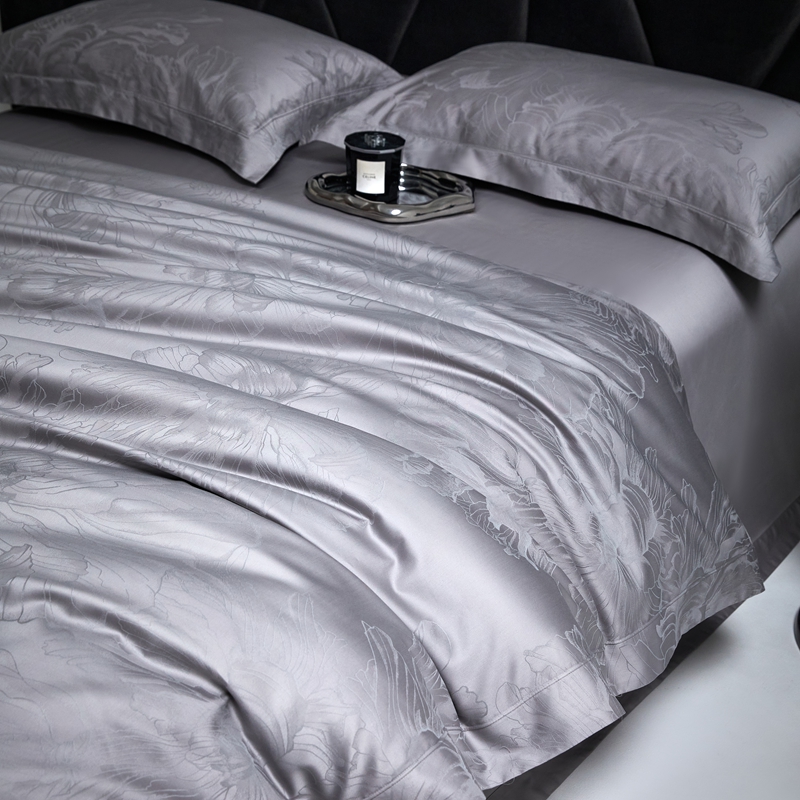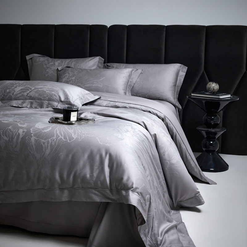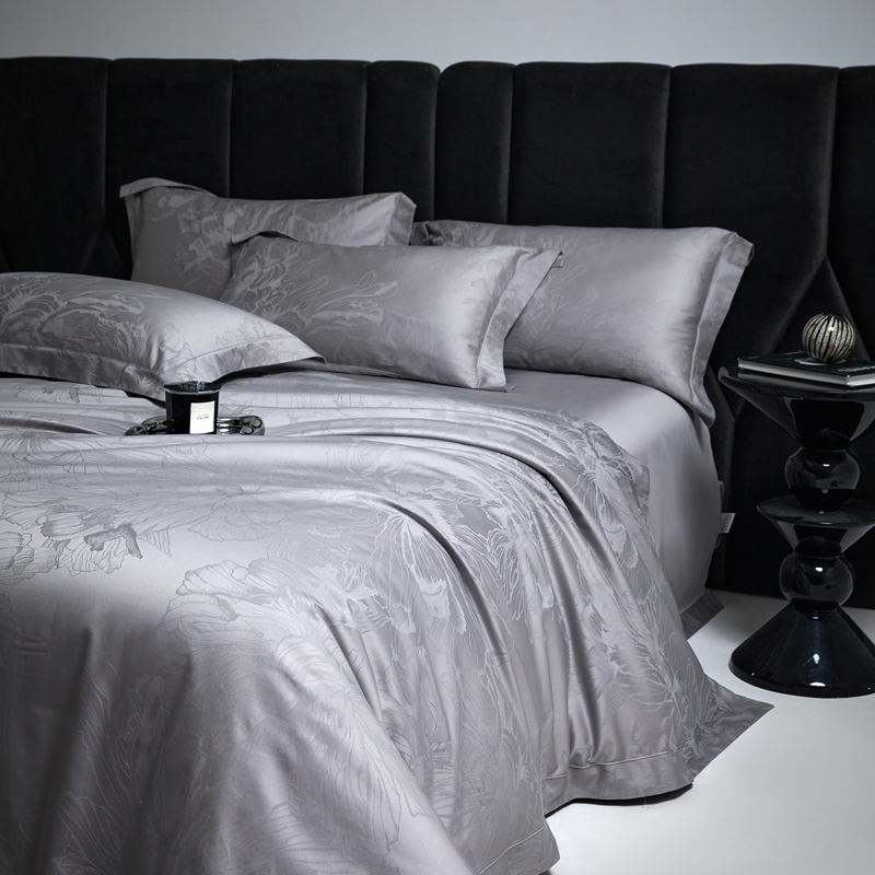 商品名称:淳绵家居 2024新款50*50S长绒棉贡缎提花四件套 欧若拉-高级灰