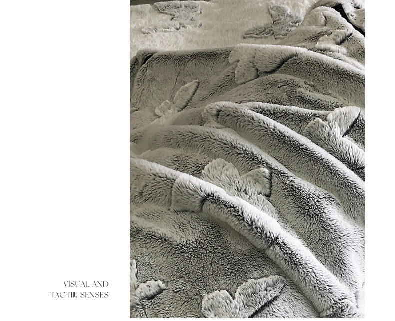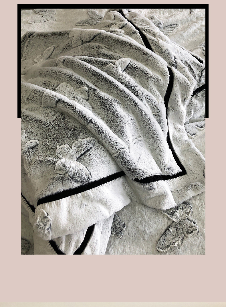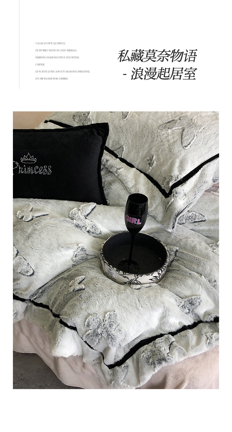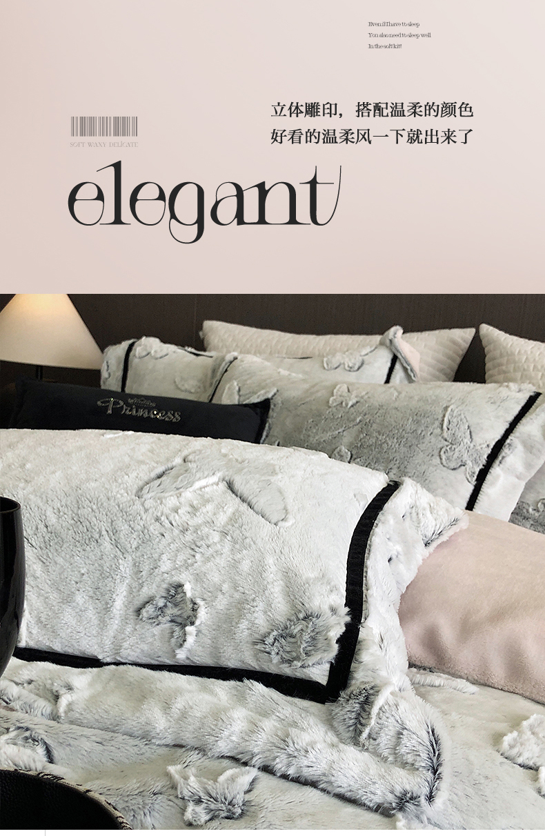 商品名称:罗优家纺 2025新款兔兔绒牛奶绒雕印蝴蝶系列四件套(控价369) 蝴蝶灰白