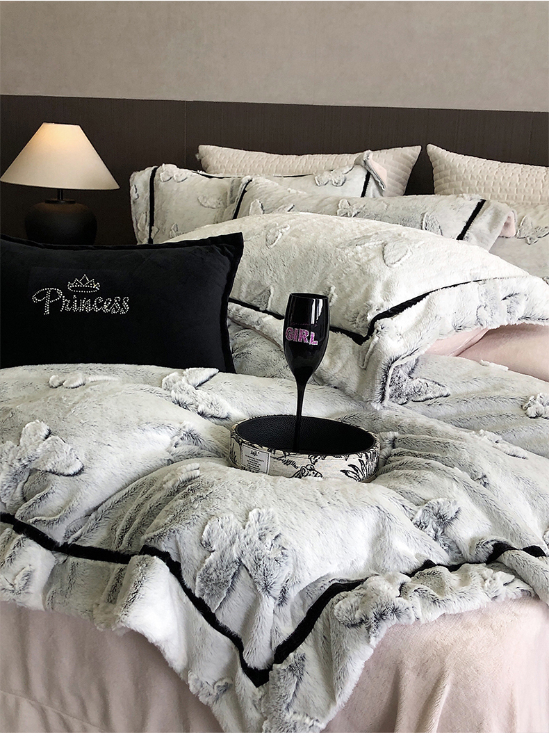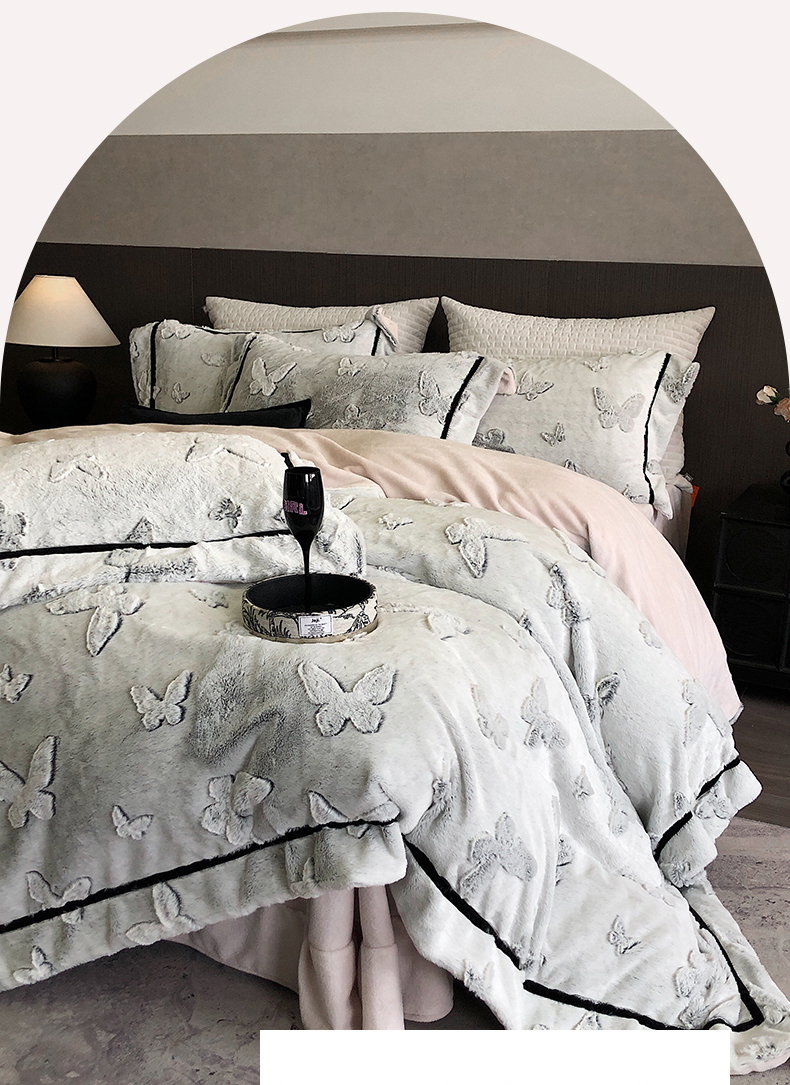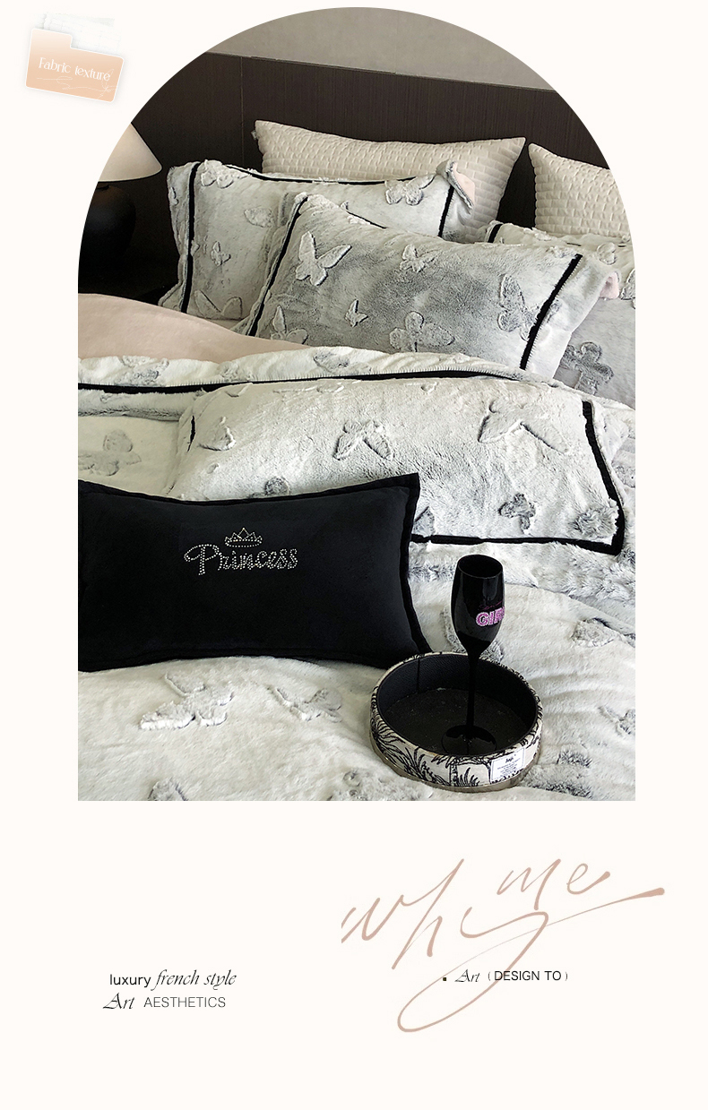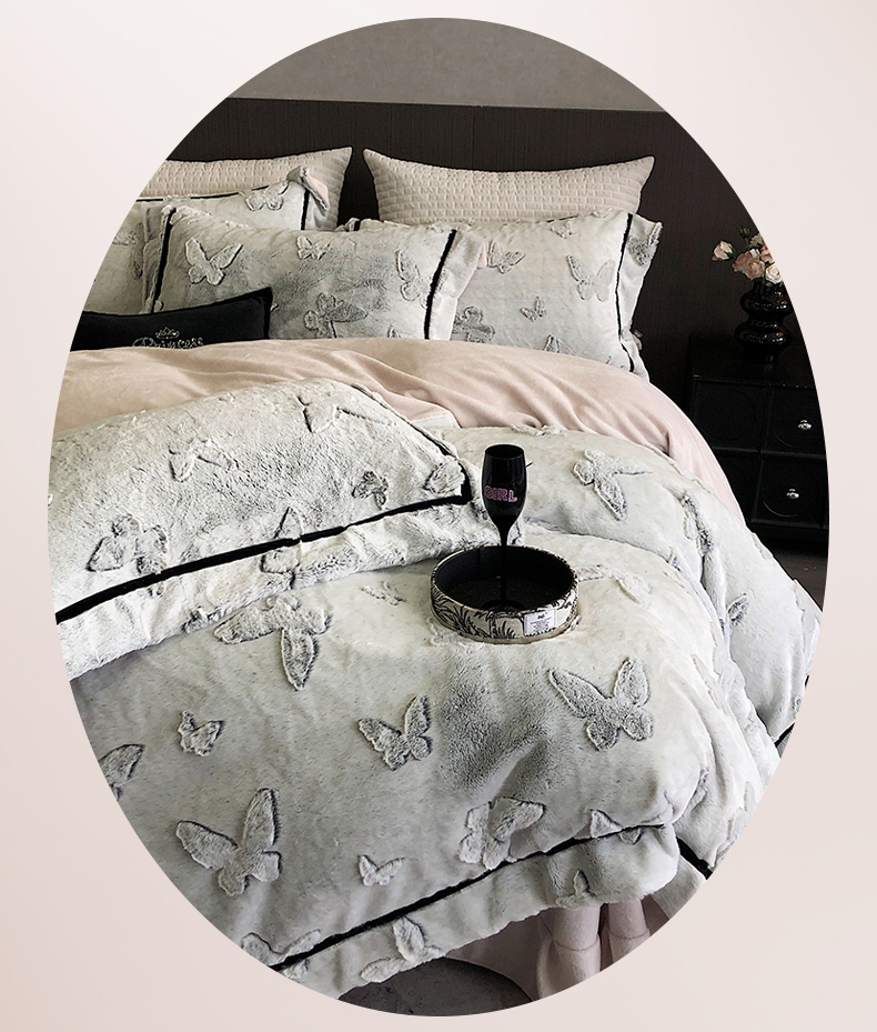 罗优家纺 2025新款兔兔绒牛奶绒雕印蝴蝶系列四件套(控价369) 蝴蝶灰白