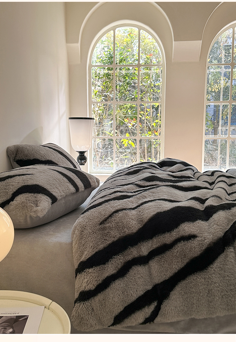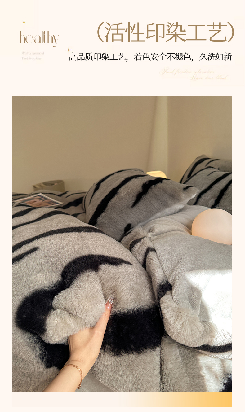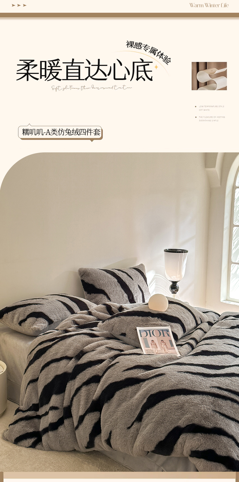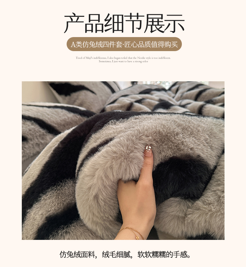 商品名称:罗优 2025新款A类仿兔绒四件套-赫本 赫本-霞光灰