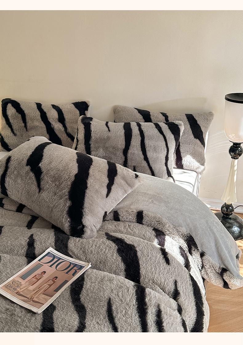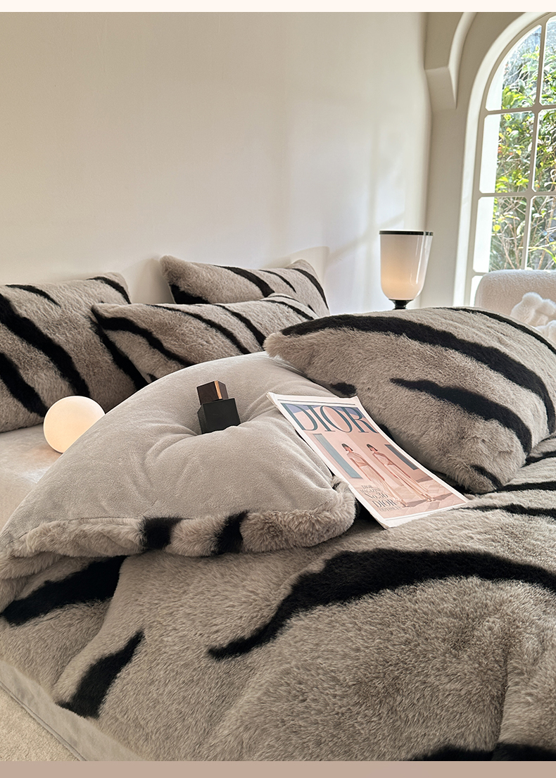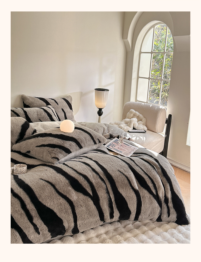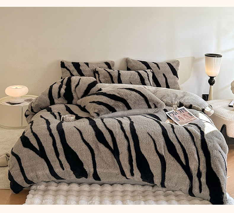 商品名称:罗优 2025新款A类仿兔绒四件套-赫本 赫本-霞光灰