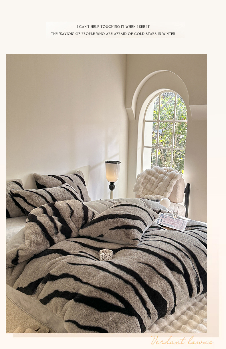 罗优 2025新款A类仿兔绒四件套-赫本 赫本-霞光灰