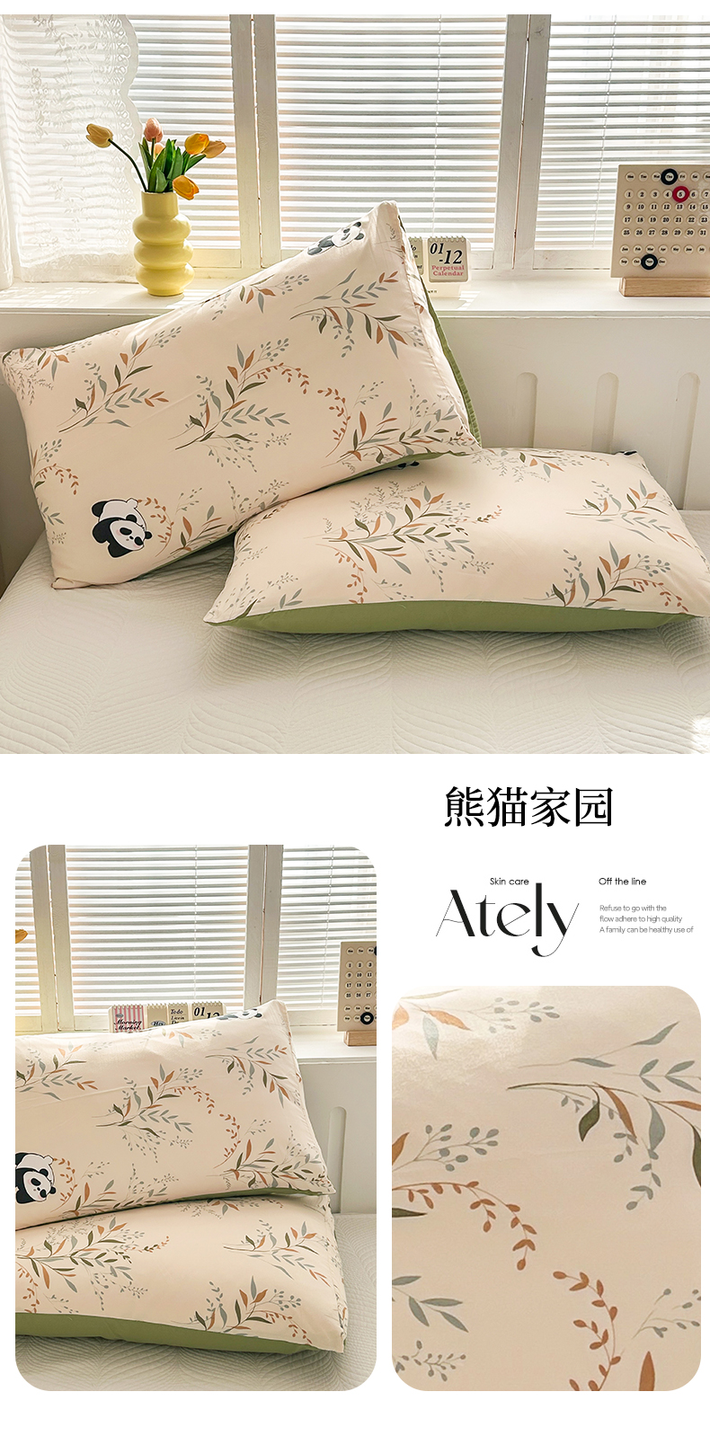 多品家纺 2025新款花卉系列超柔水洗棉枕套 熊猫家园