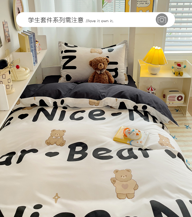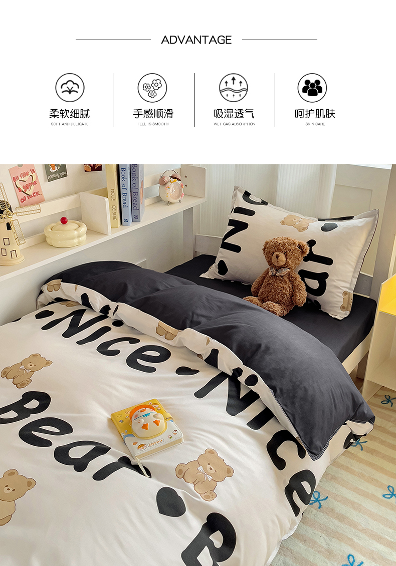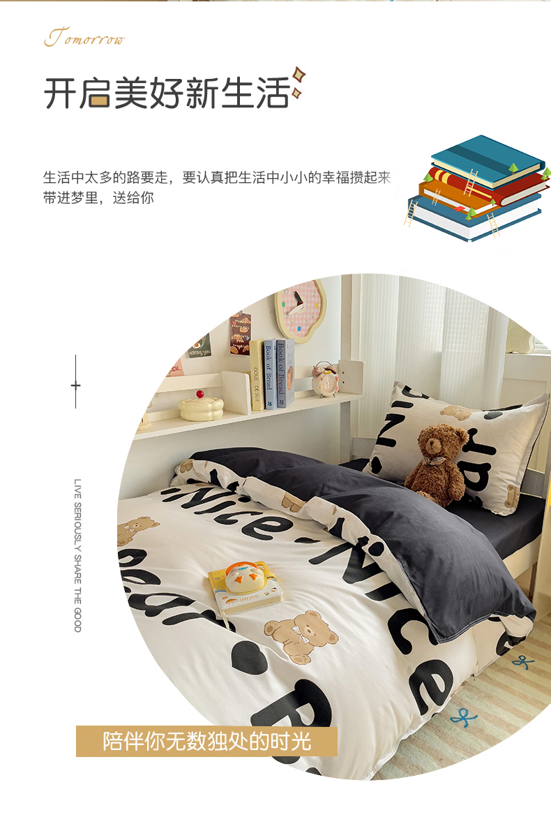 商品名称:港岛妹妹 2024新款芦荟棉印花四件套四件套学生床宿舍图帕丁熊