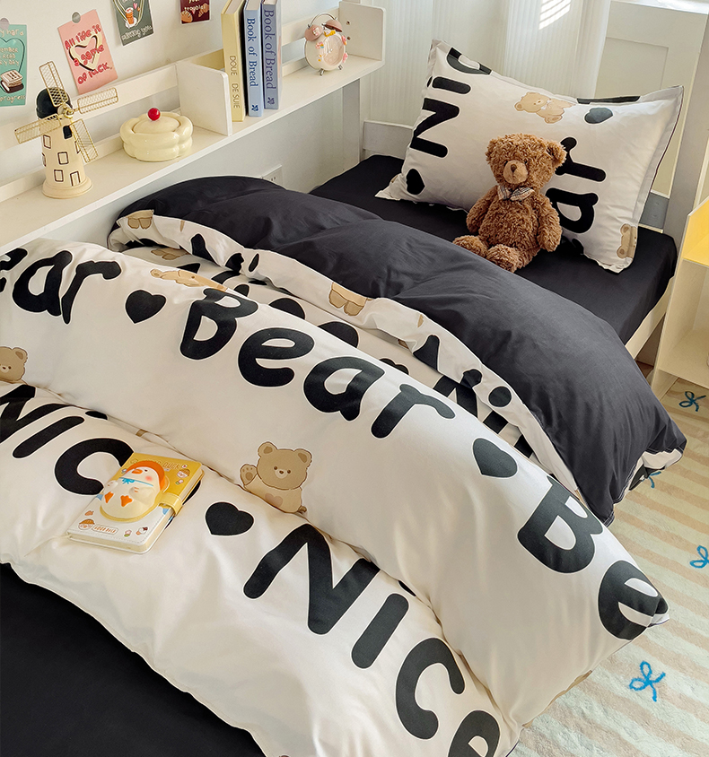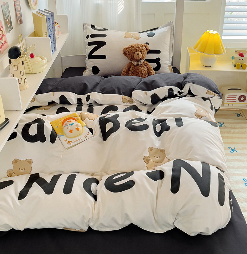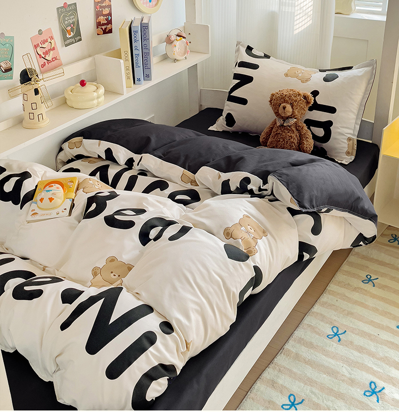 港岛妹妹 2024新款芦荟棉印花四件套四件套学生床宿舍图帕丁熊