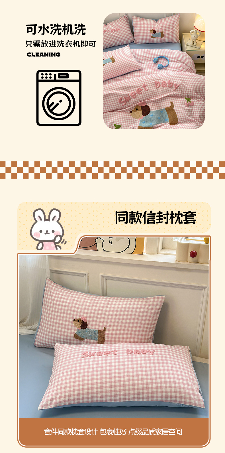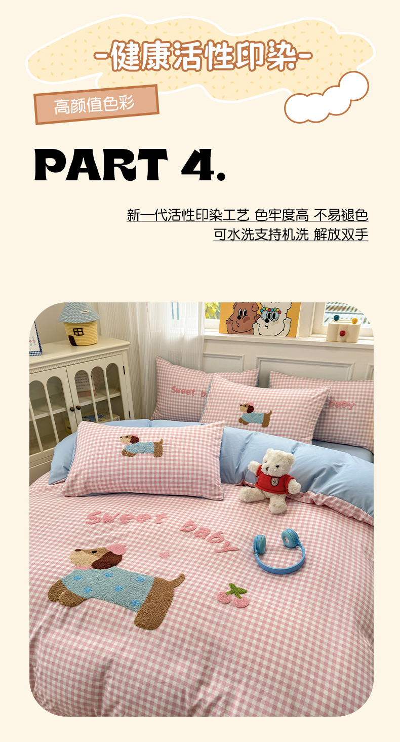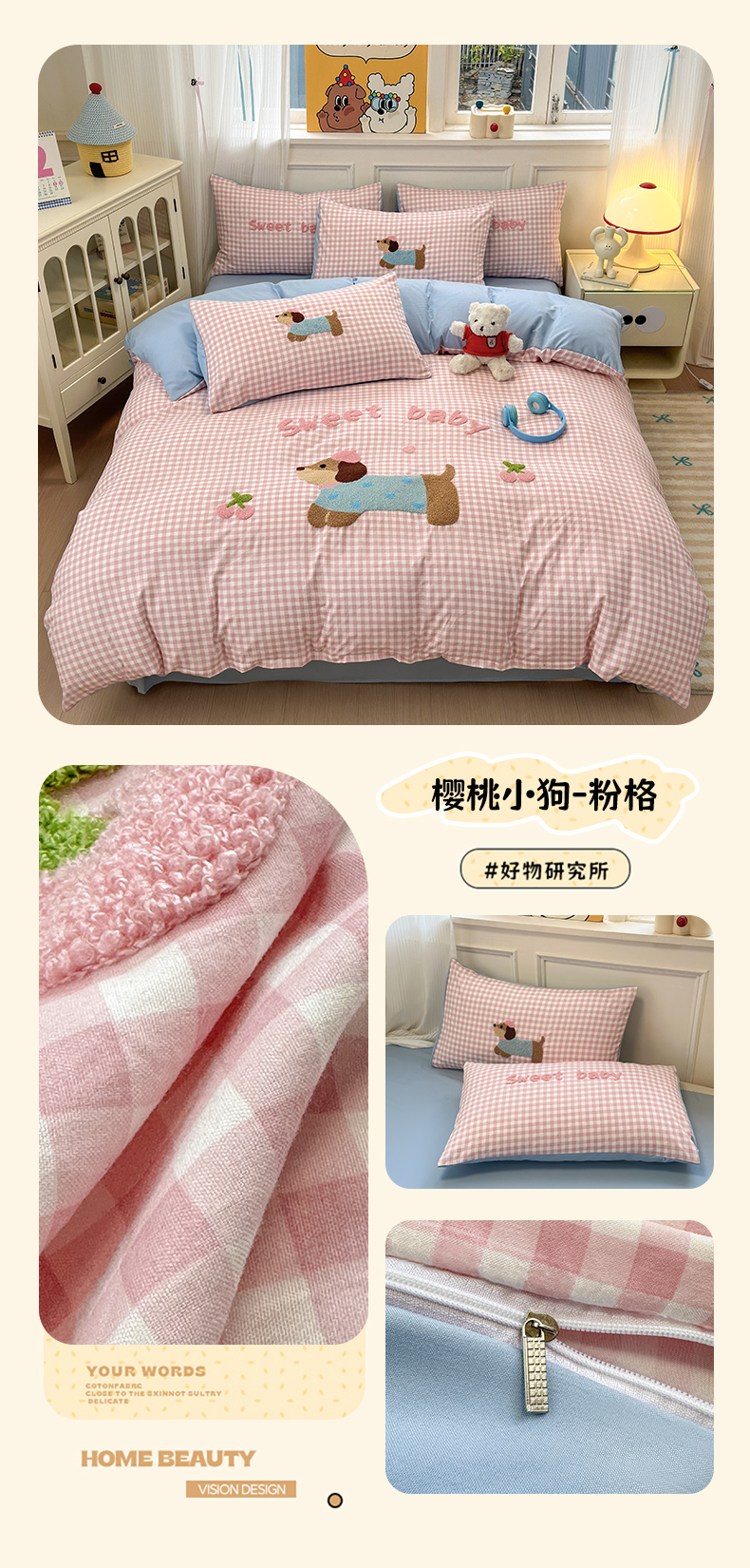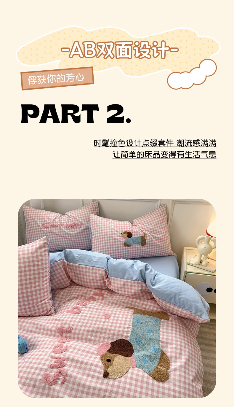 当前位置: 91家纺网 > 商品网购 > 床品套件 > 四件套 > 毛巾绣四件套 > 罗亿家纺 2025新款云朵糯糯棉(110g)腊肠狗毛巾绣四件套 樱桃小狗-粉格