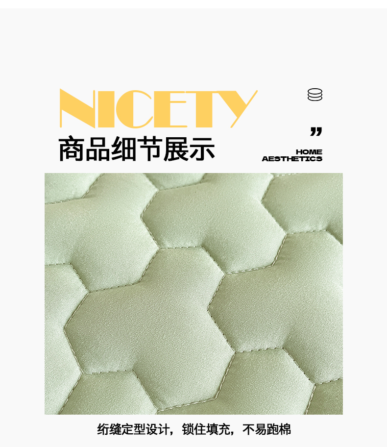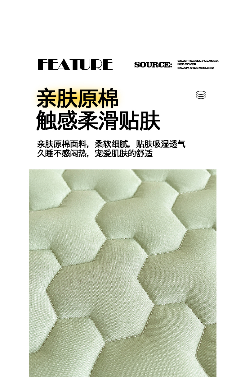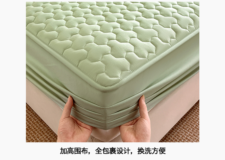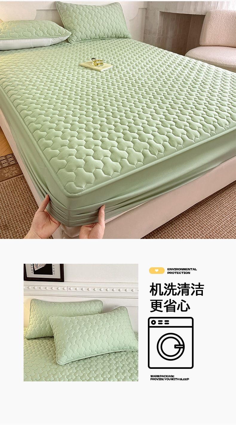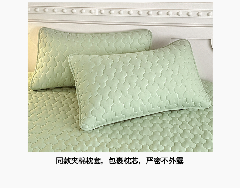商品名称:迪梦思家纺 2025新款A类亲肤原棉夹棉床笠-蜂窝 蜂窝-豆绿