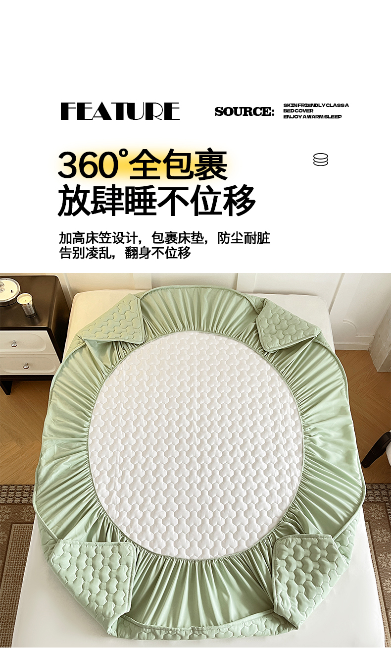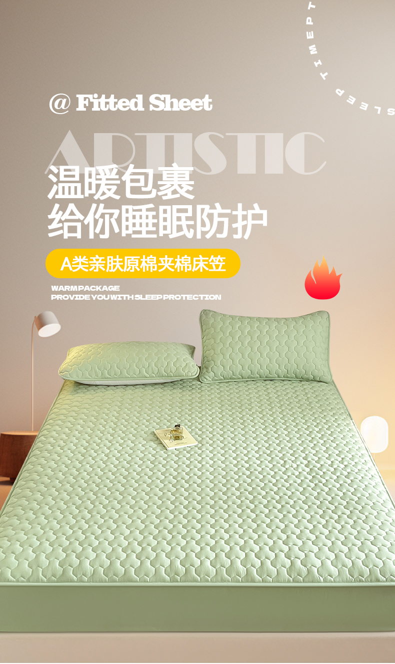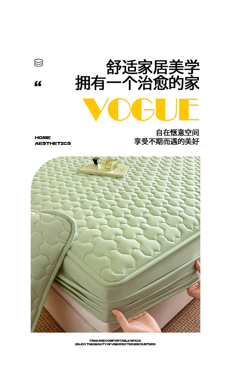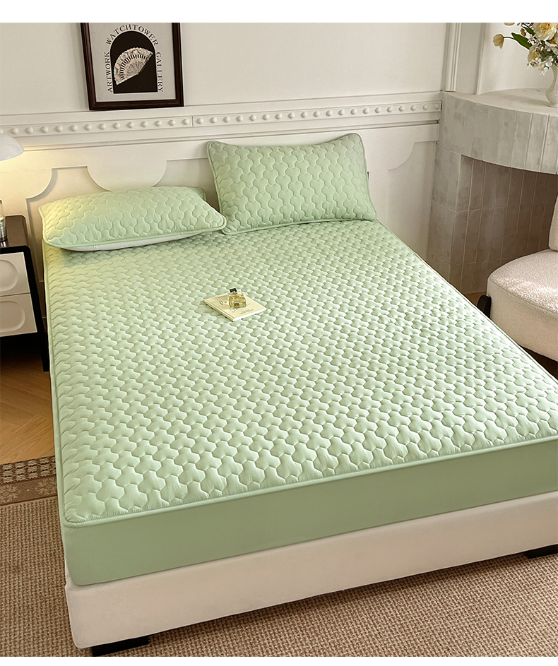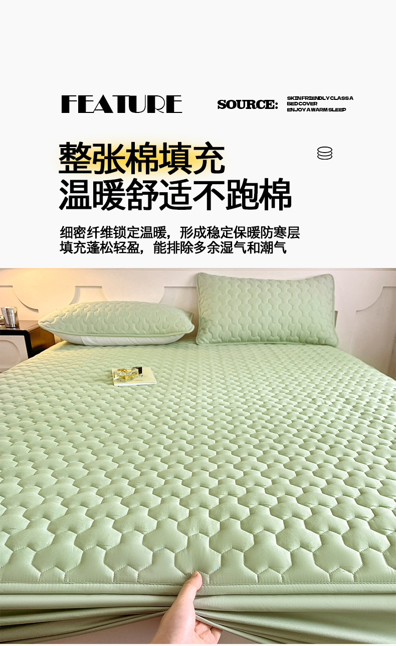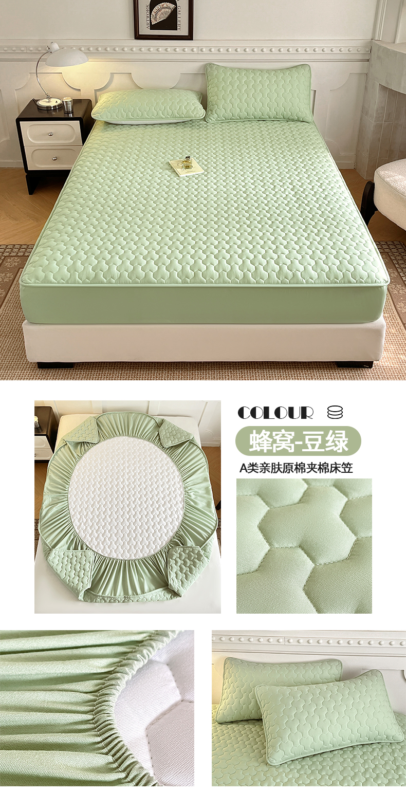迪梦思家纺 2025新款A类亲肤原棉夹棉床笠-蜂窝 蜂窝-豆绿