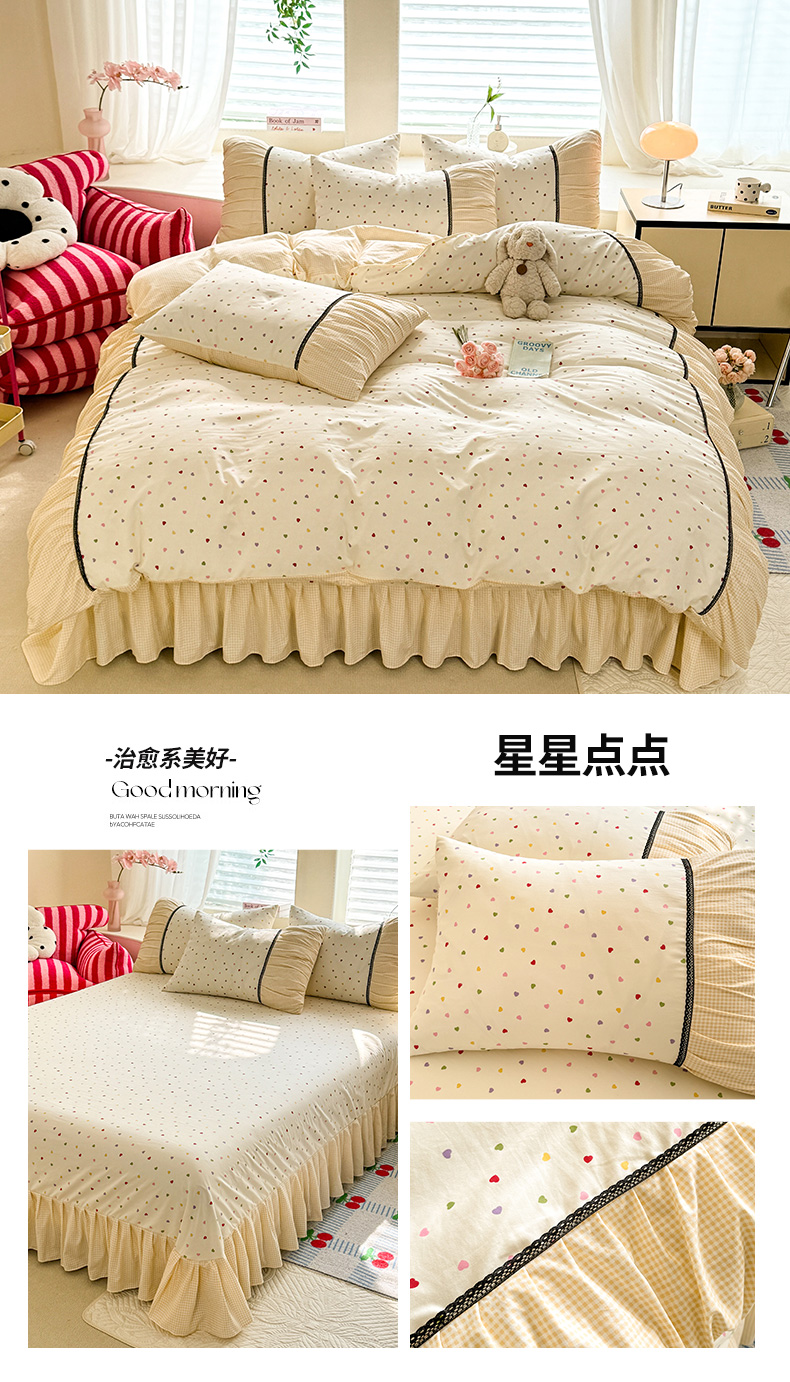 商品名称:芭比蔓家纺 2025新款磨毛法式浪漫复古四件套 星星点点