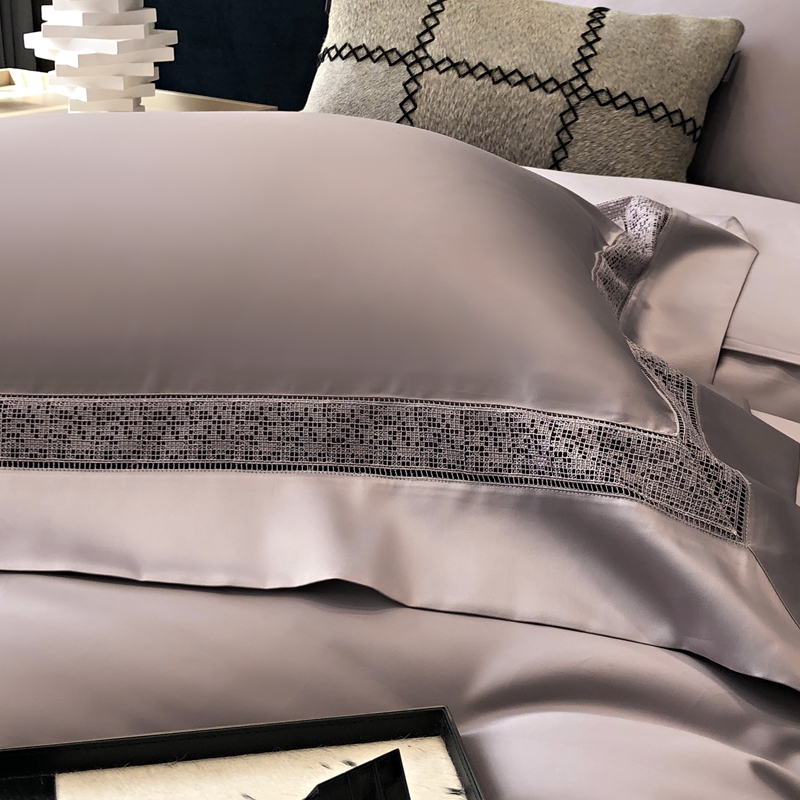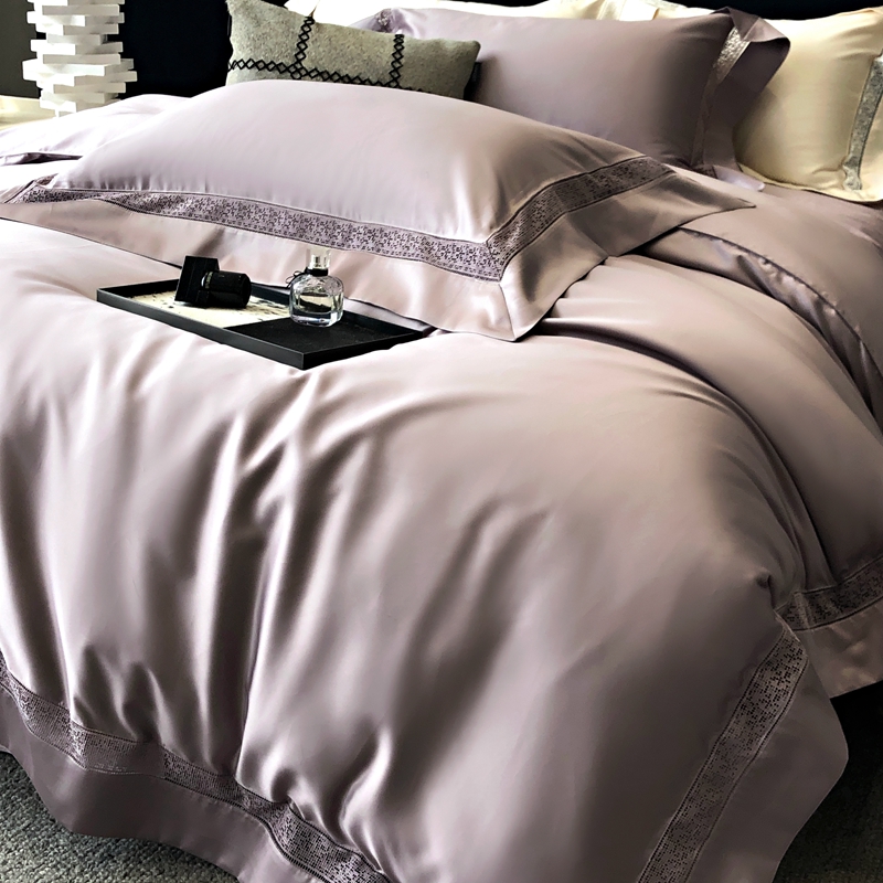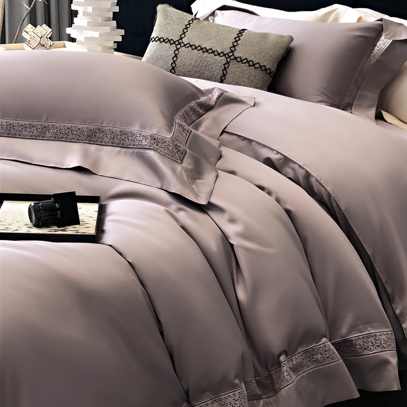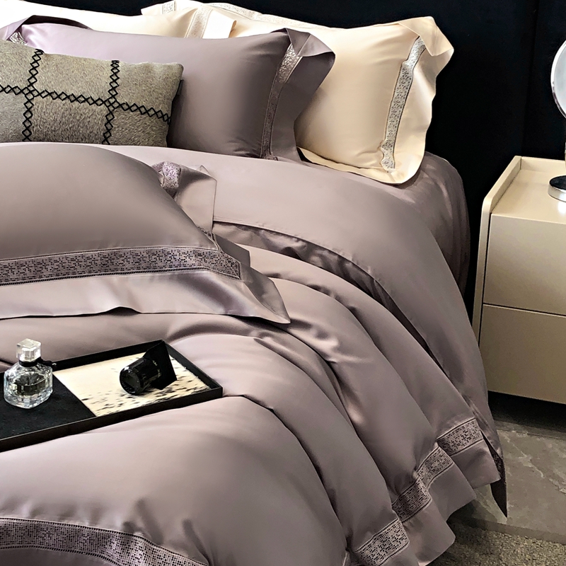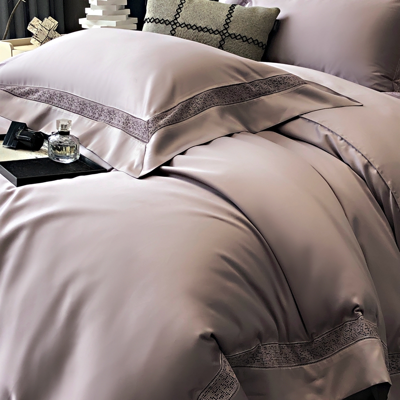 佳汐蓝家纺 2025新款160支全棉贡缎威尔系列四件套 威尔-烟灰紫