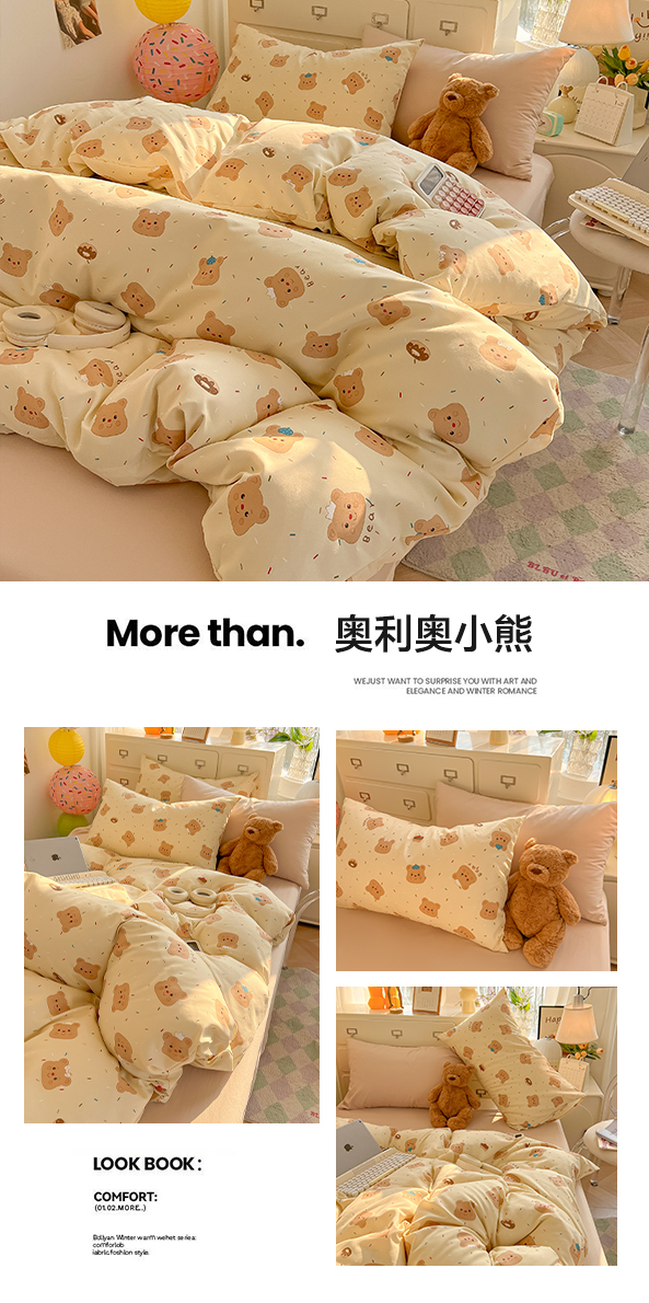 当前位置: 91家纺网 > 商品网购 > 床品套件 > 四件套 > 化纤普通四件套 > 韩巢家纺 2025新款水洗棉印花AA版四件套 奥利奥小熊