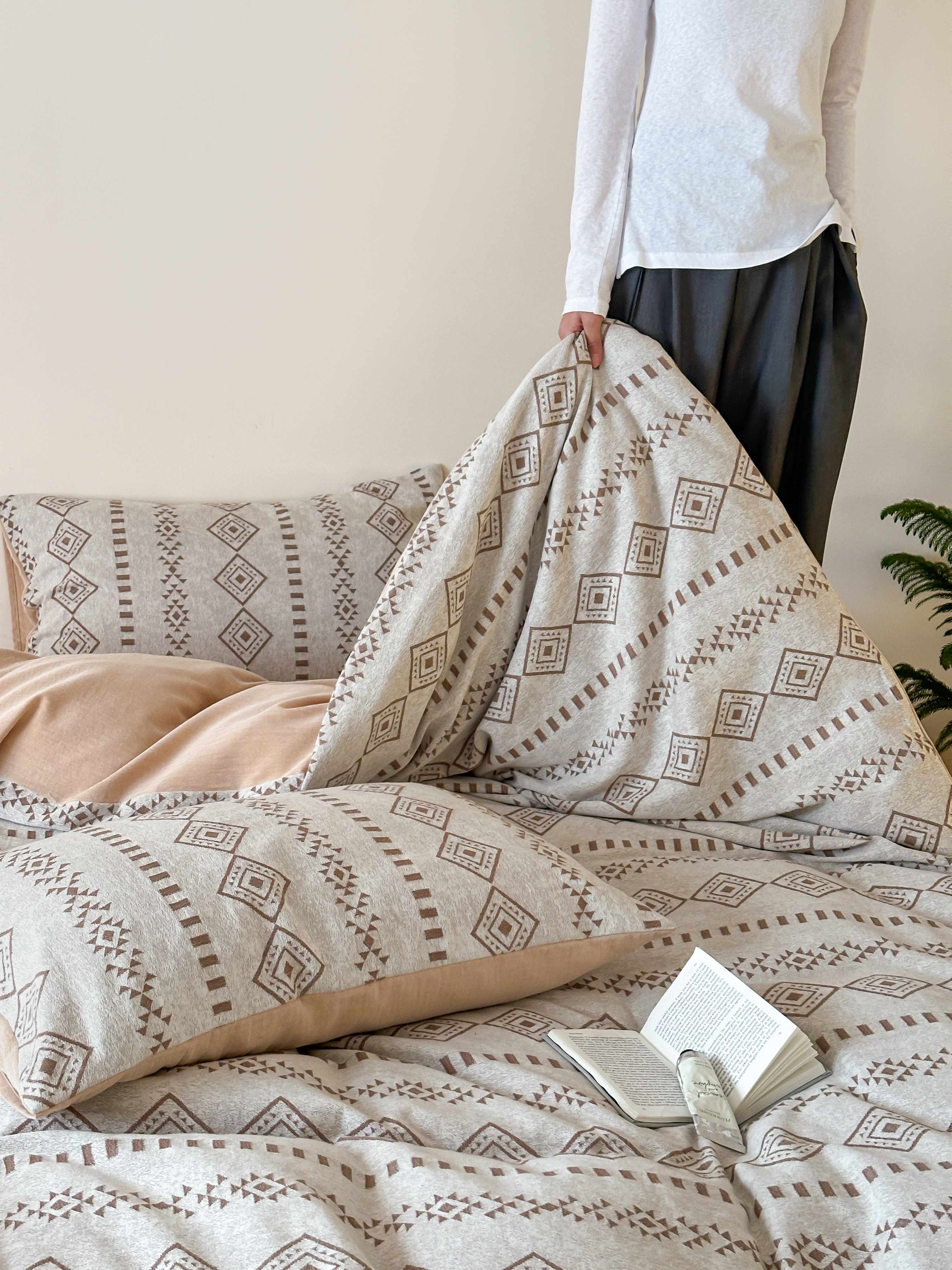 (总)简家居 2025新款60支色织空气棉四件套-敦煌喜梦,敦煌喜梦