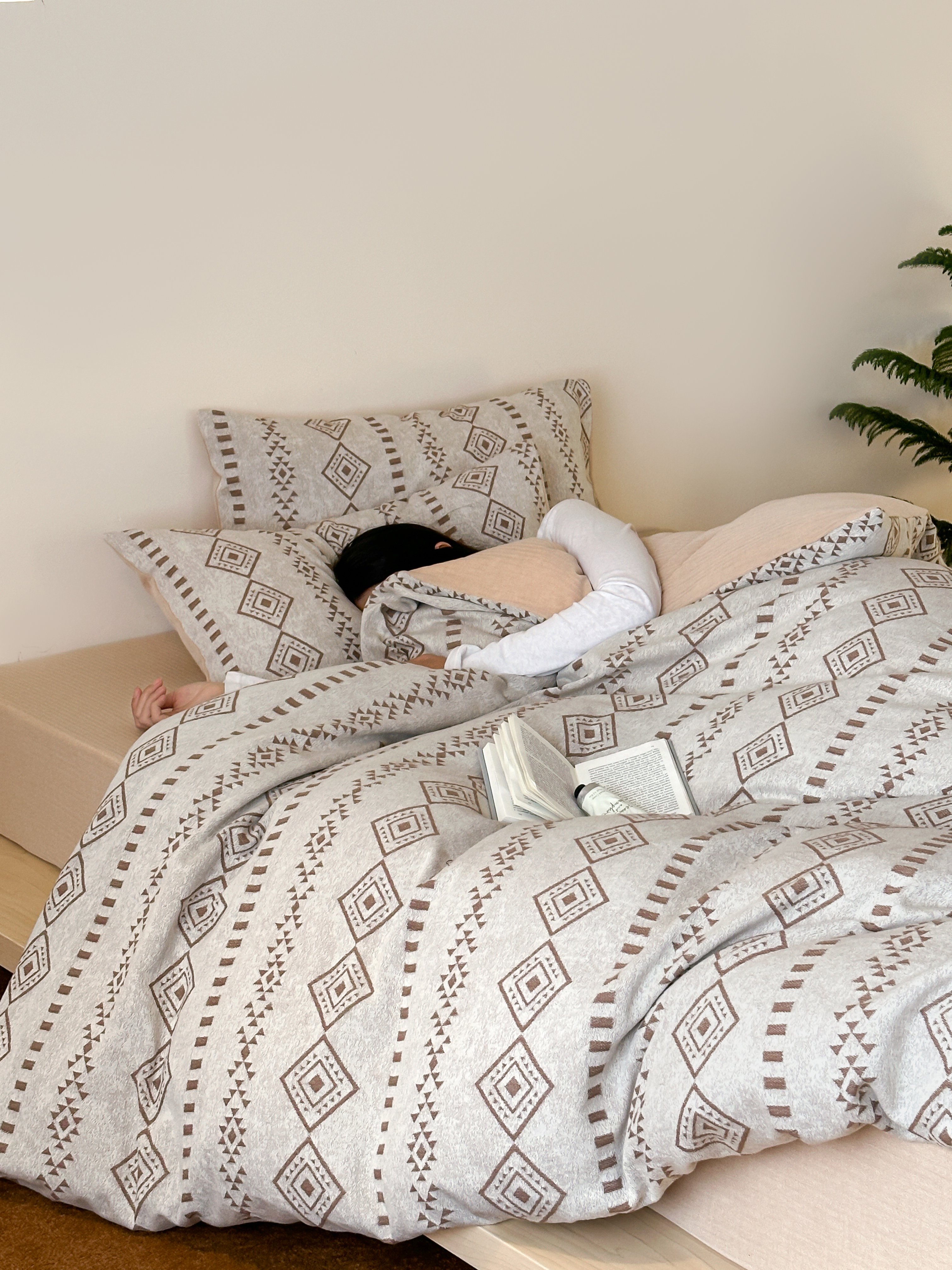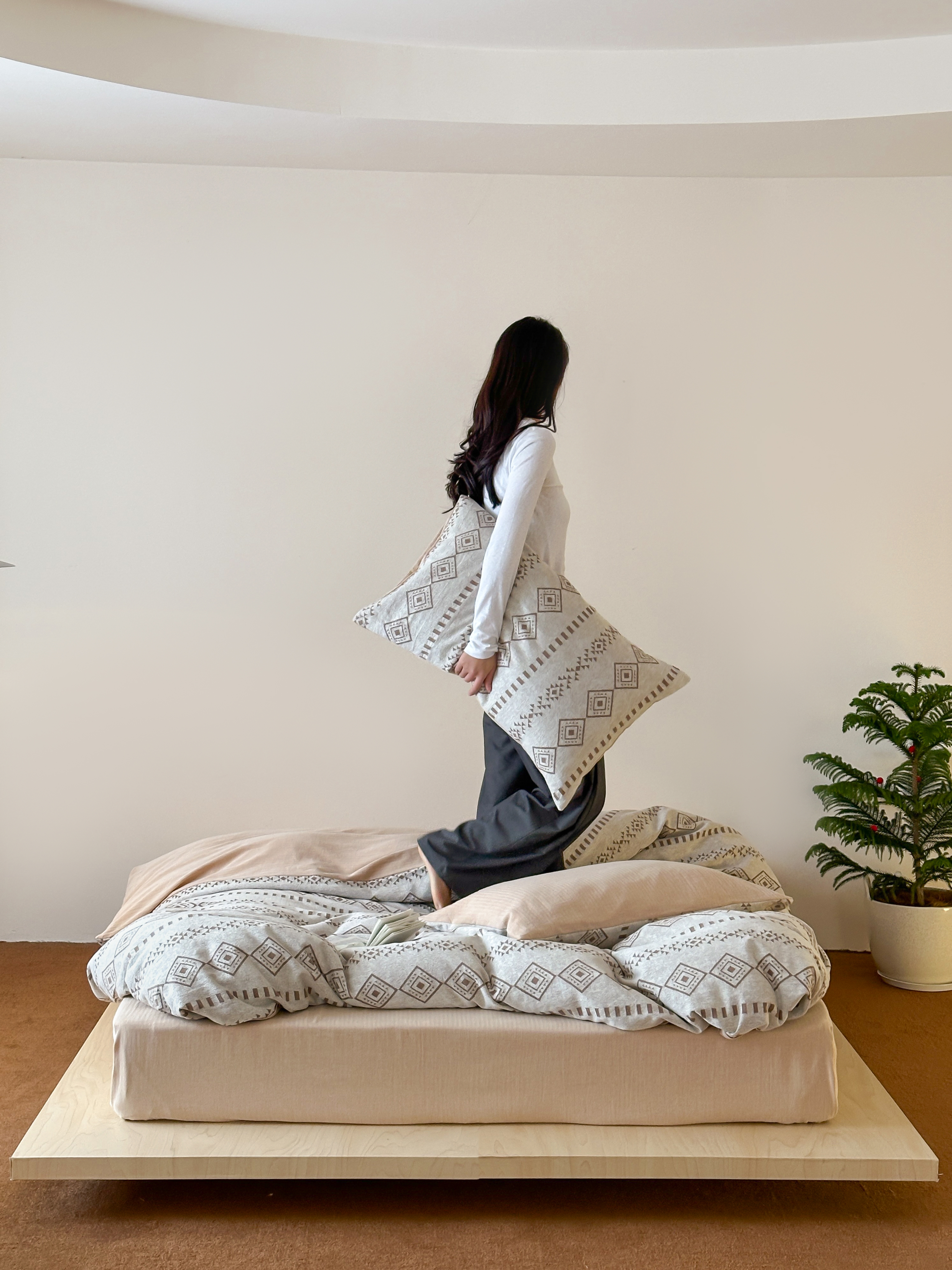 (总)简家居 2025新款亲肤舒适棉麻床盖三件套,棉麻提花