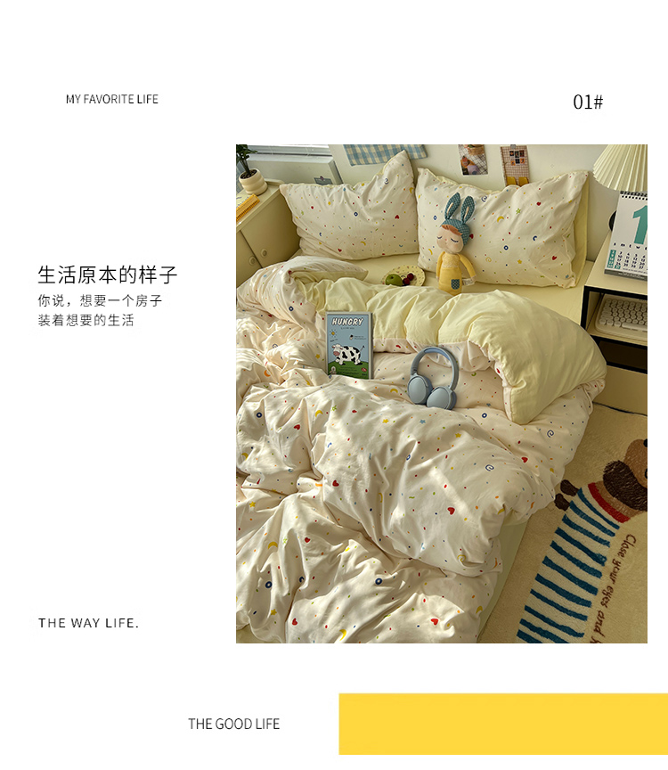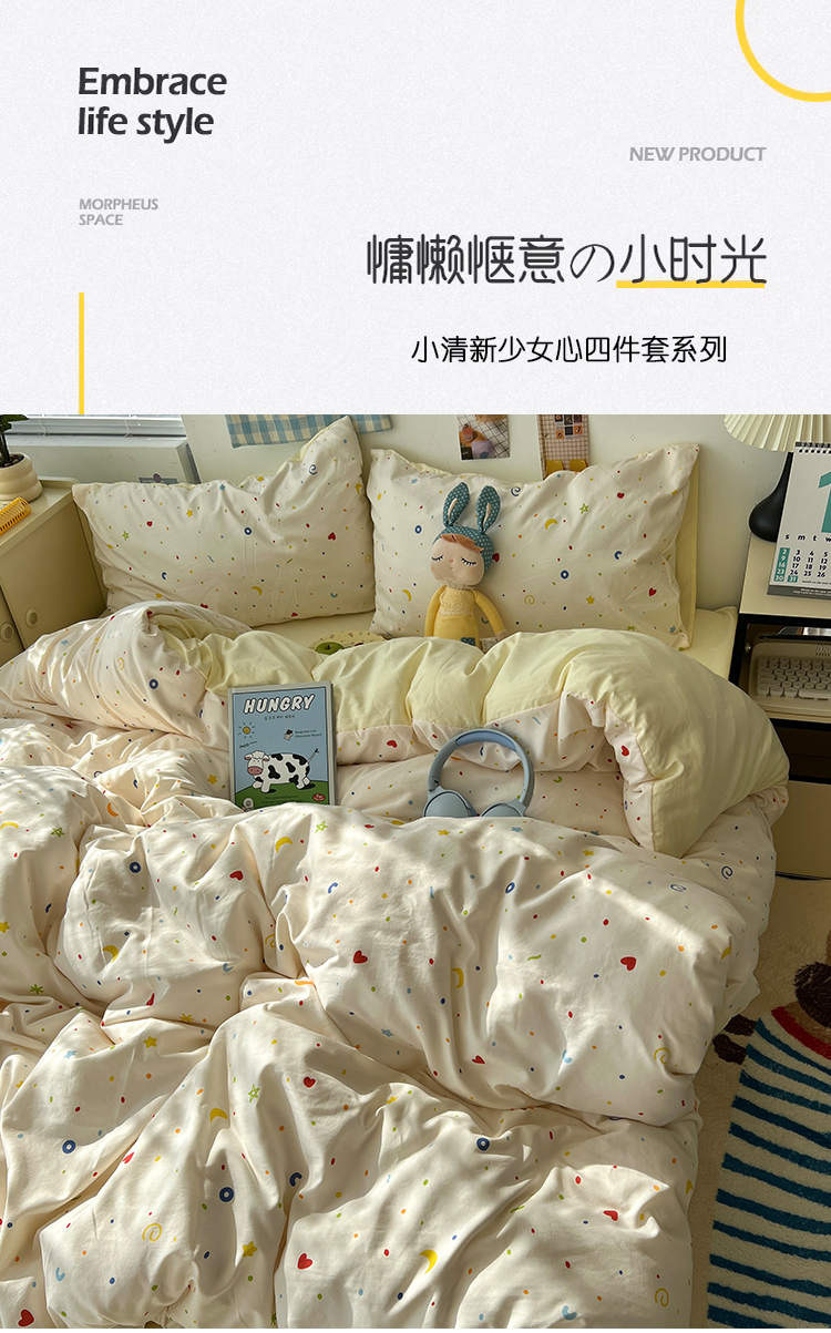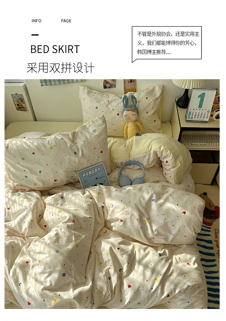 当前位置: 91家纺网 > 商品网购 > 床品套件 > 四件套 > 其它四件套 > 原素 2025软绵绵的双拼印花水洗棉四件套 星星月亮
