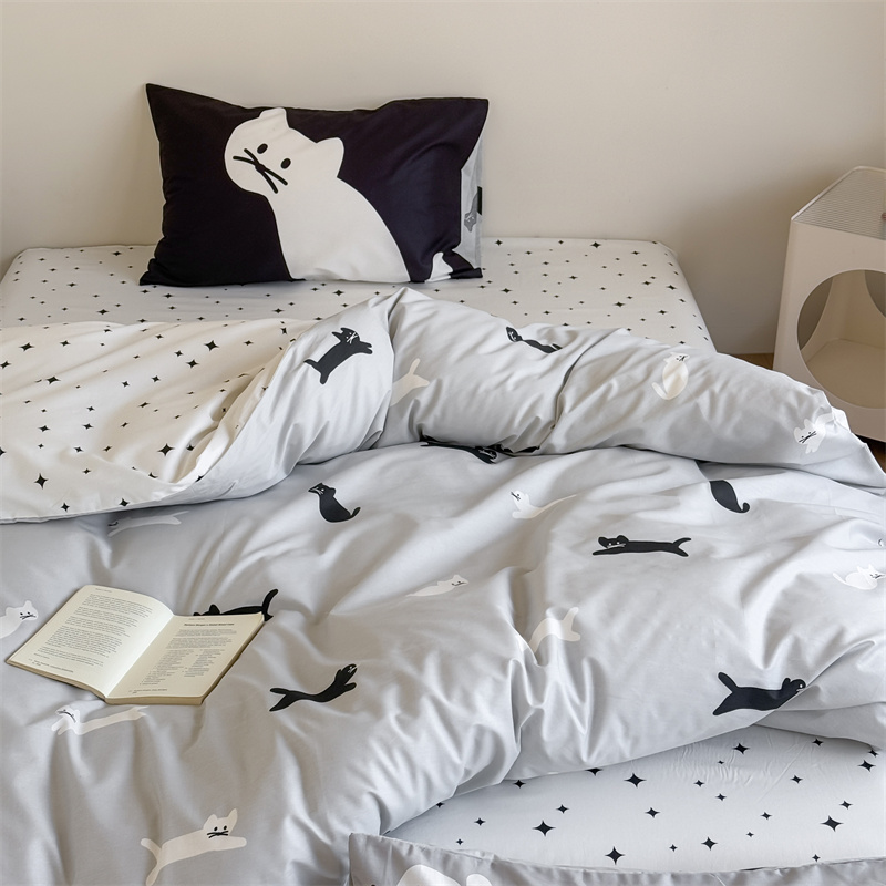 当前位置: 91家纺网 > 商品网购 > 床品套件 > 四件套 > 全棉普通四件套 > 窝米 2025新款全棉13370四件套 ins萌趣卡通风系列(花香熊猫、格汪梦) 猫影