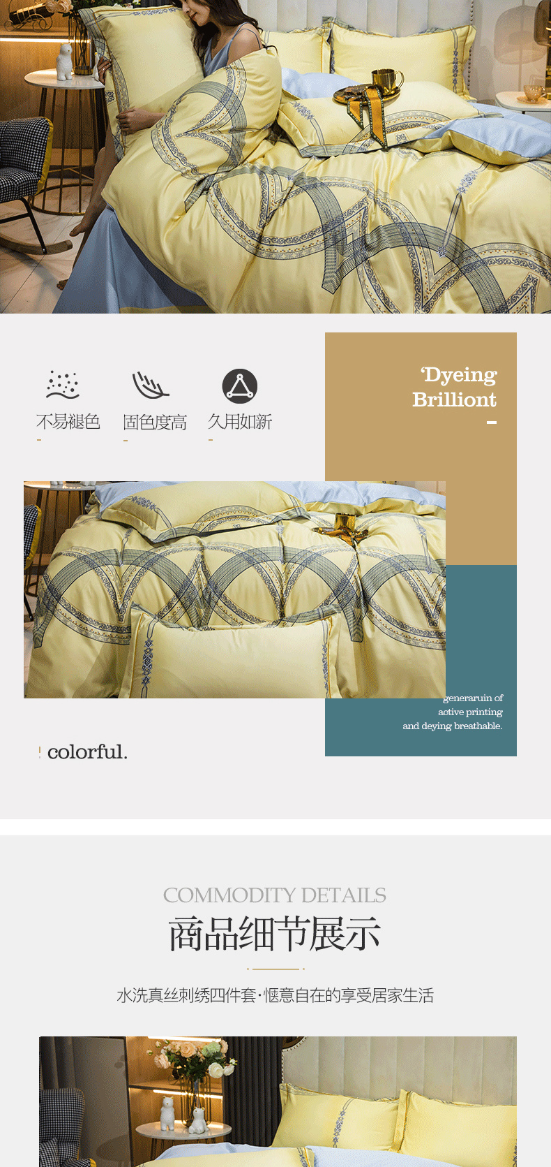 商品名称:耀悦家纺 2025新款水洗真丝四件套简约印花小清新欧式ins新中式冰丝四件套 西域风情