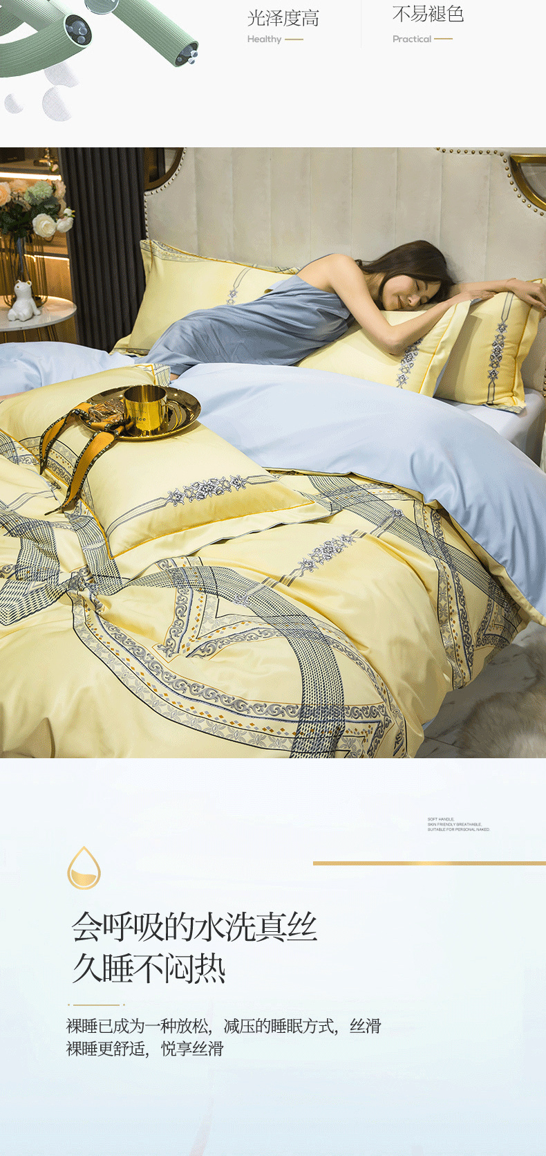 耀悦家纺 2025新款水洗真丝四件套简约印花小清新欧式ins新中式冰丝四件套 西域风情