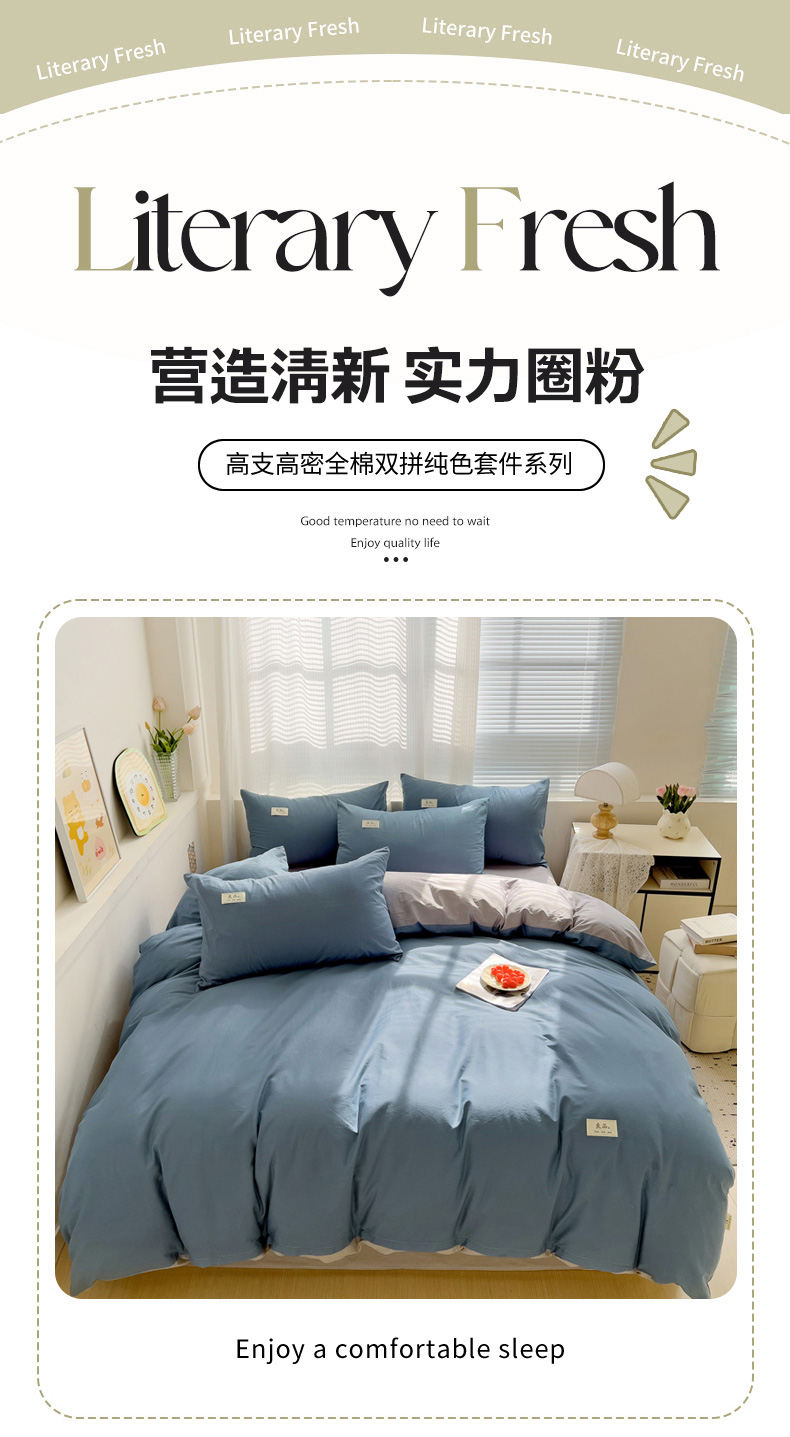 当前位置: 91家纺网 > 商品网购 > 床品套件 > 四件套 > 全棉普通四件套 > 眠博士 2025新款40支高支高密全棉撞色双拼四件套 全棉拼色-宝蓝+银灰