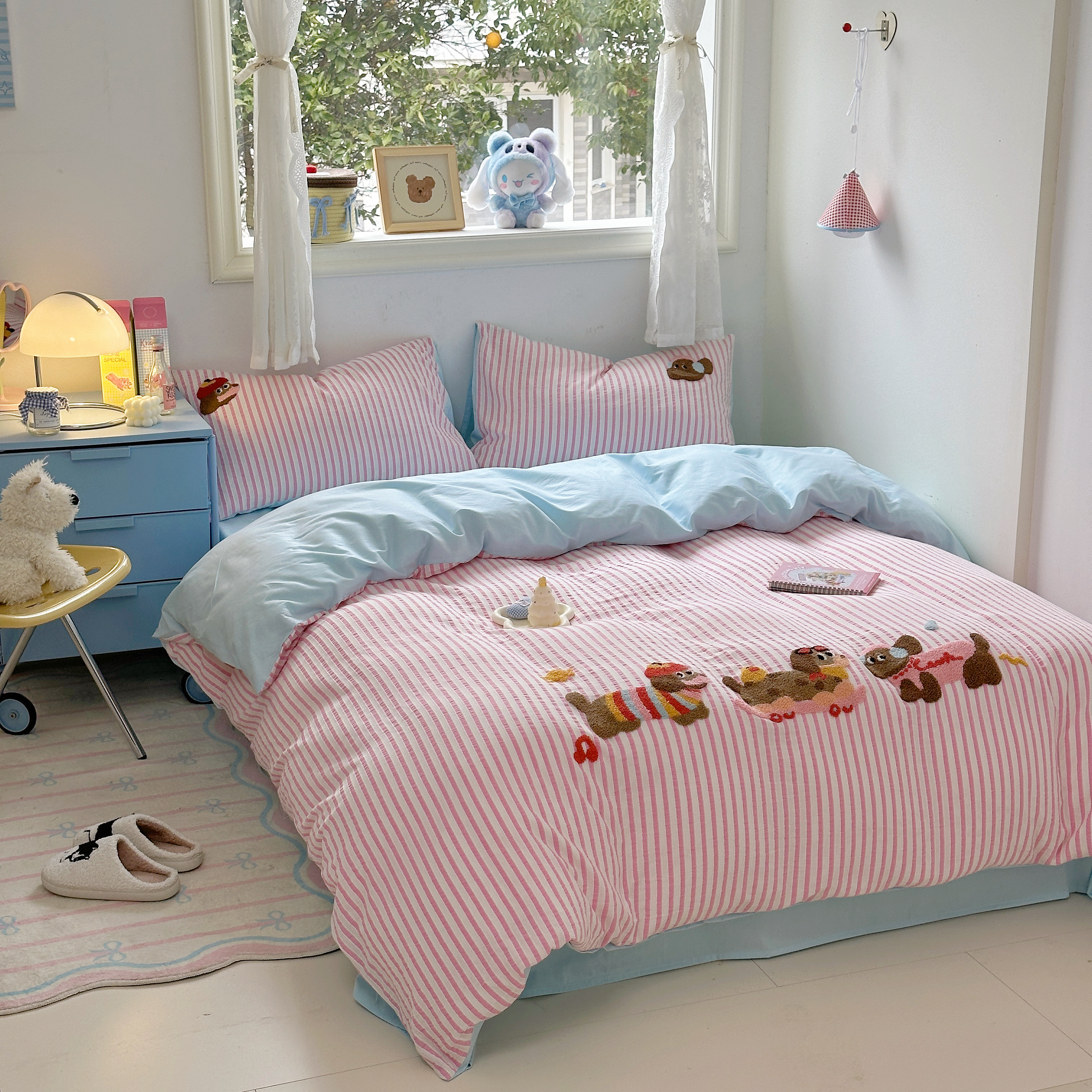 (总)珺柔家纺 2025新款13070数码枕毛巾绣系列四件套,奔跑小兔,蛋糕小兔,欢乐小狗,可爱小猫,奶油小熊,条纹小狗