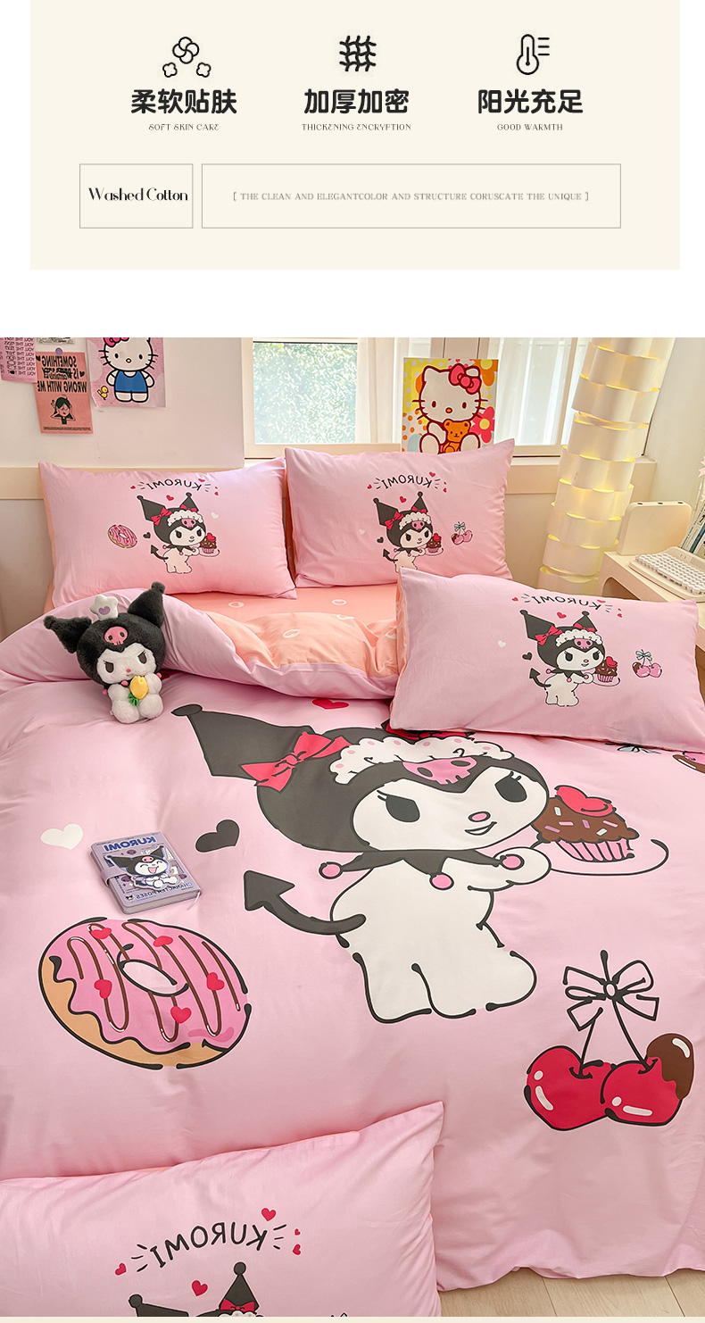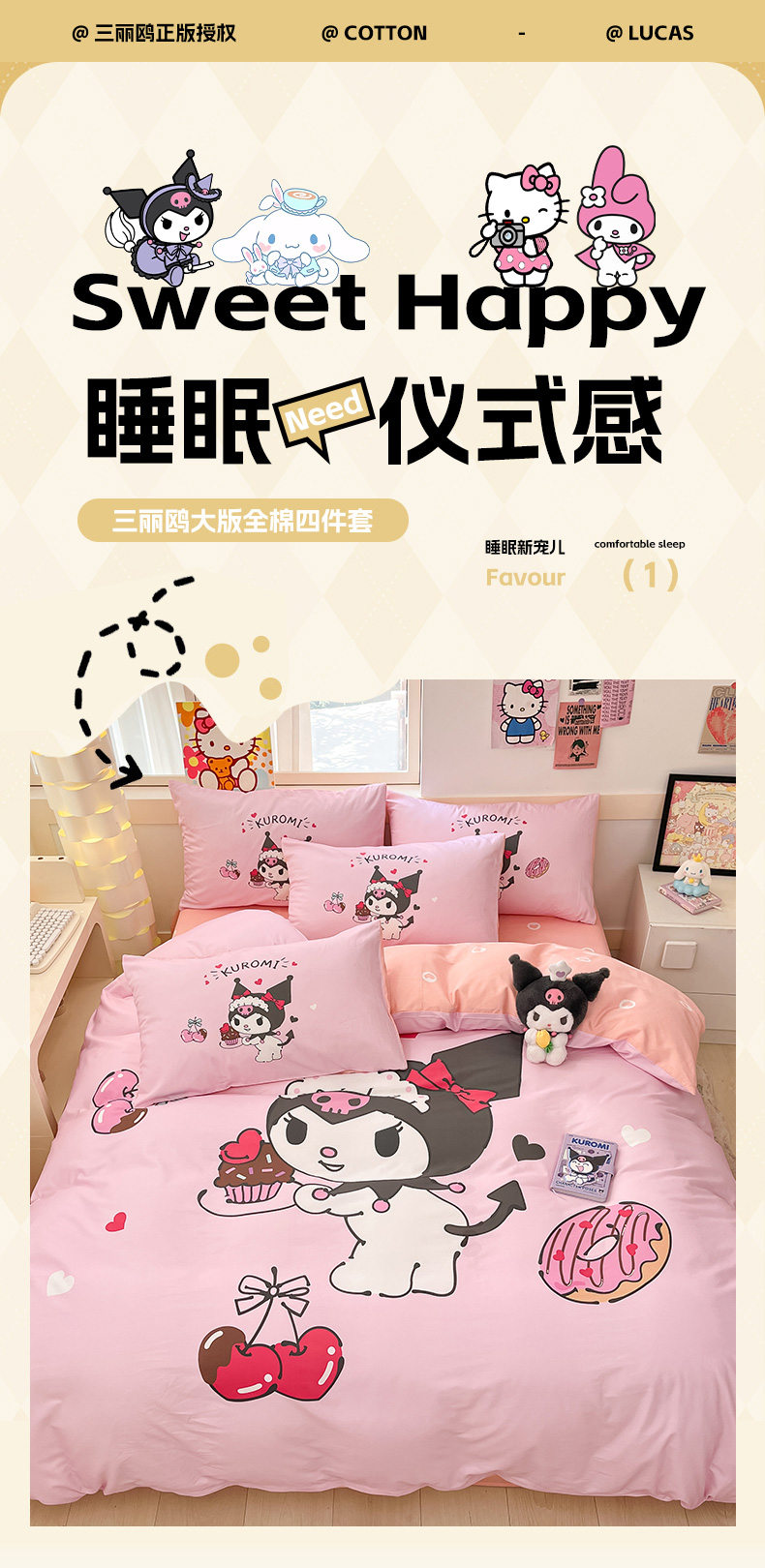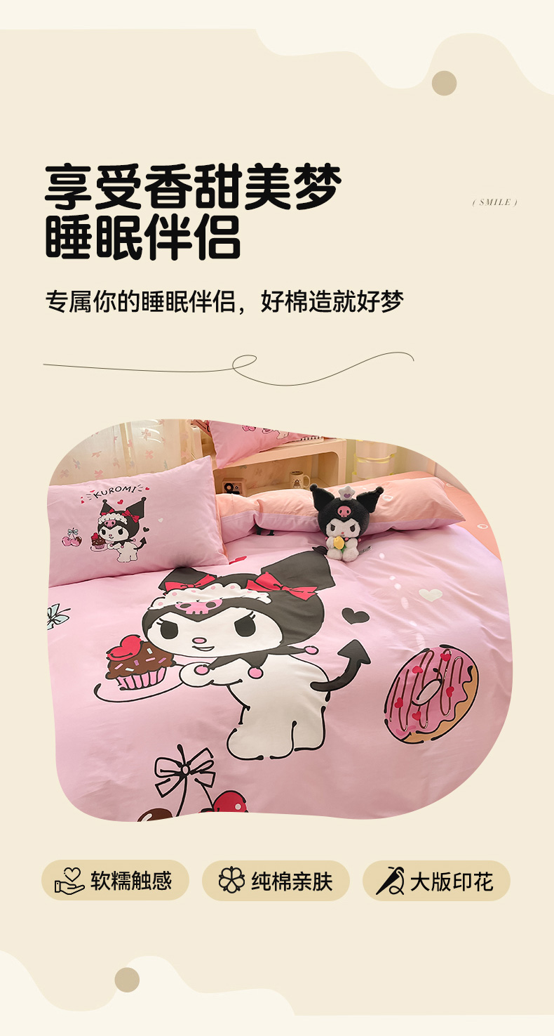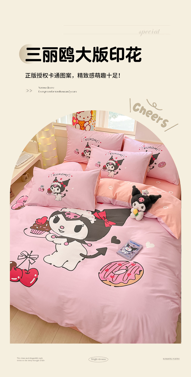 当前位置: 91家纺网 > 商品网购 > 床品套件 > 四件套 > 全棉普通四件套 > 博雅 2025新款三丽鸥大版印花全棉四件套专版花型 全棉大版(普通款口袋枕)樱桃库洛米