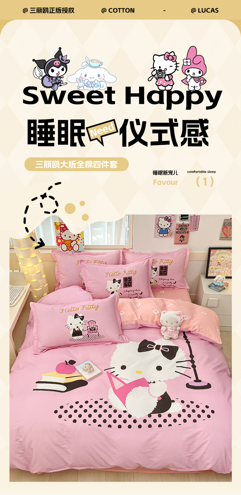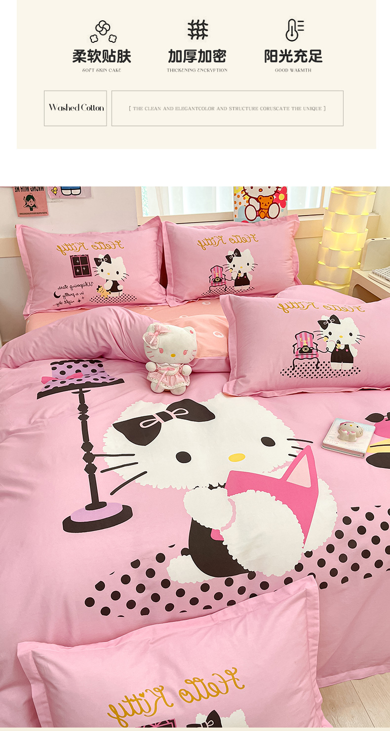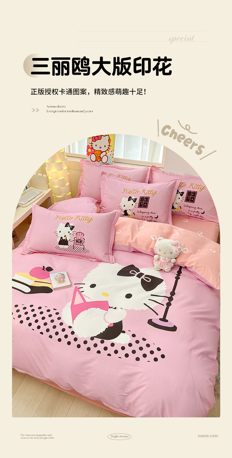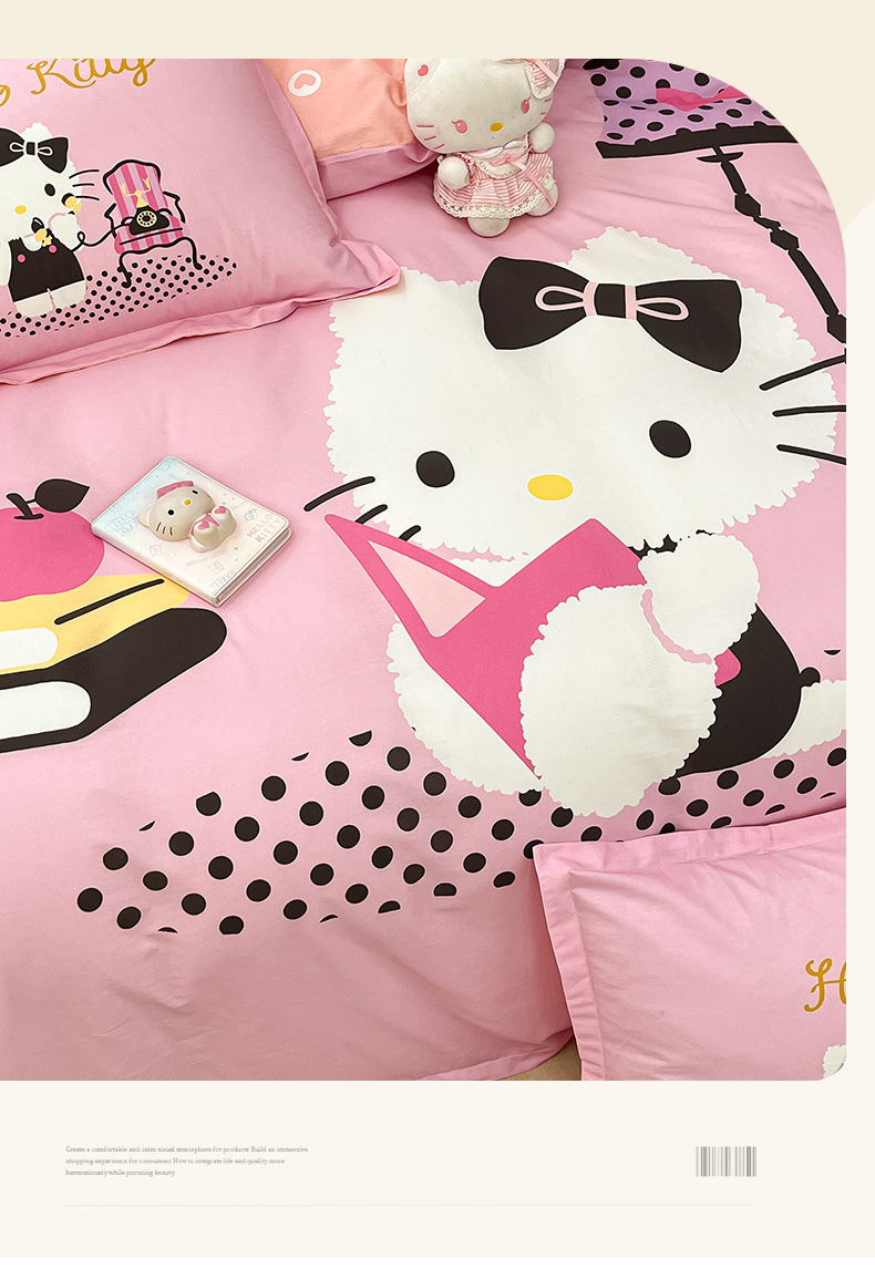 当前位置: 91家纺网 > 商品网购 > 床品套件 > 四件套 > 全棉普通四件套 > 博雅 2025新款三丽鸥大版印花全棉四件套专版花型 全棉大版(升级款信封枕)学习KT猫