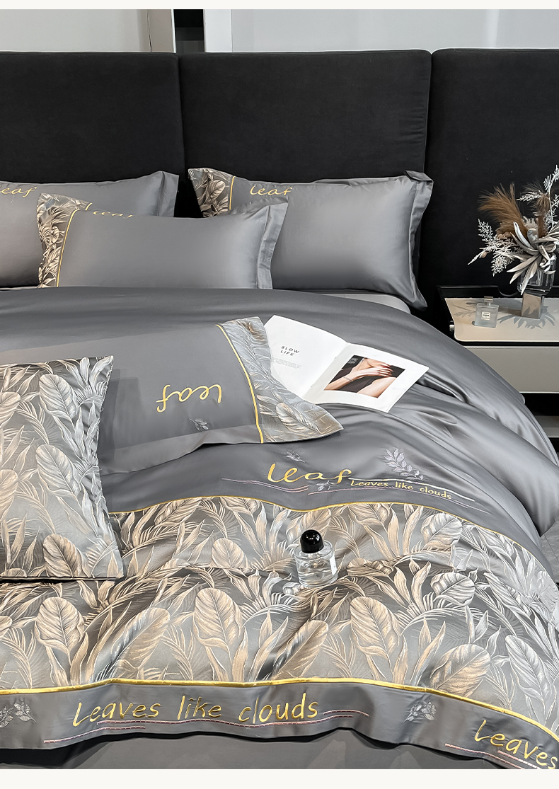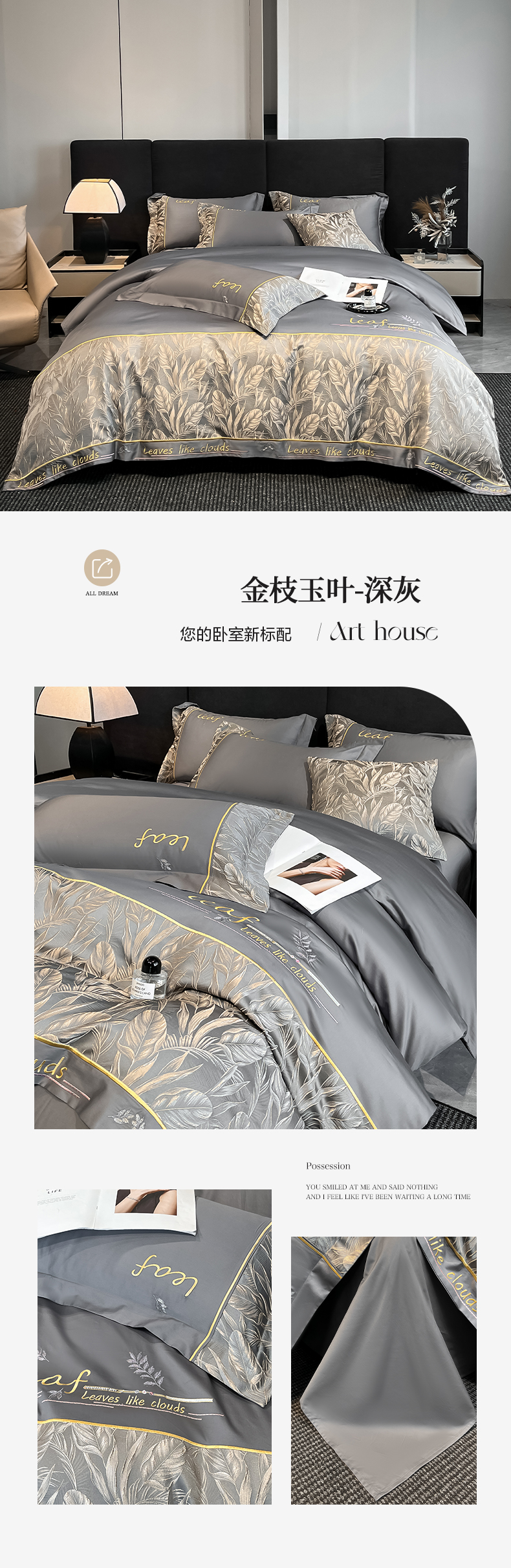 帝王家纺 2025春夏新款浮雕刺绣亲肤棉四件套-金枝玉叶 金枝玉叶-深灰
