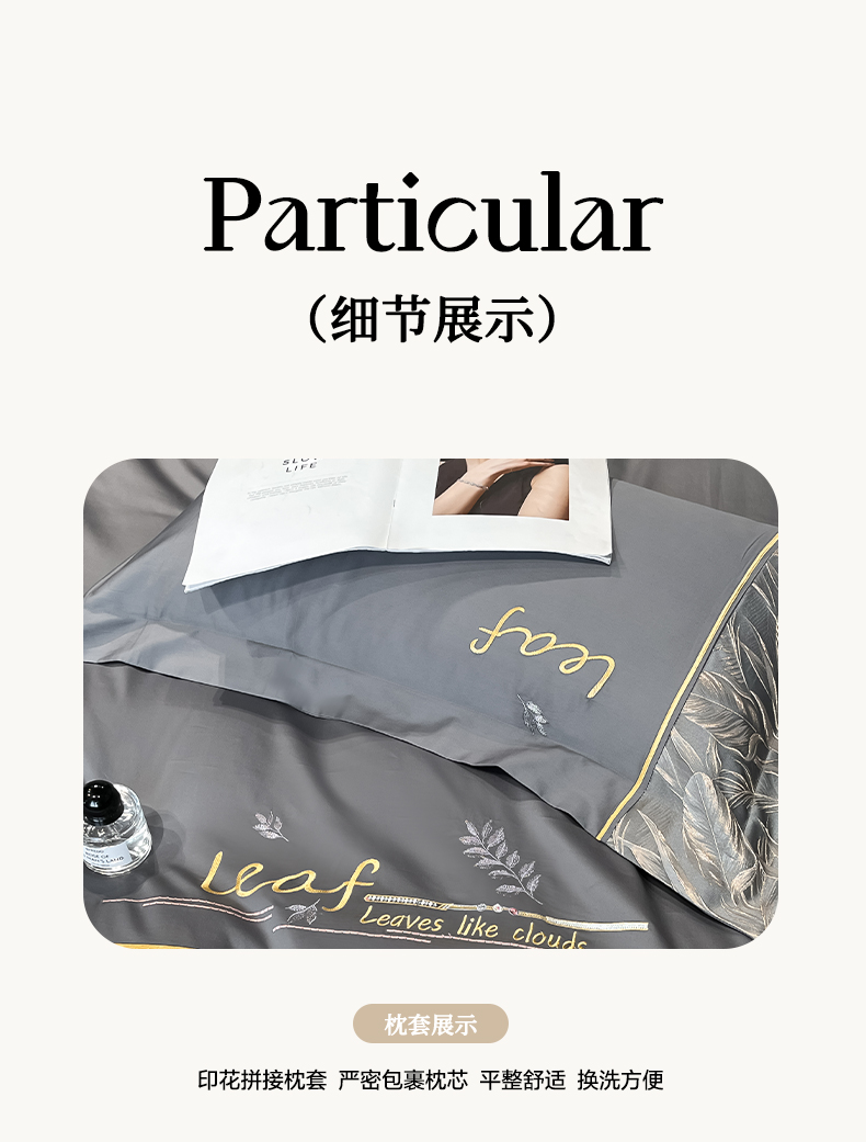 商品名称:帝王家纺 2025春夏新款浮雕刺绣亲肤棉四件套-金枝玉叶 金枝玉叶-深灰