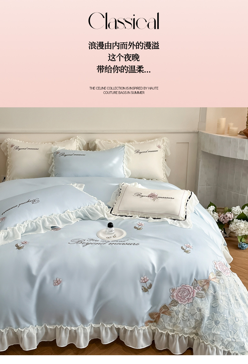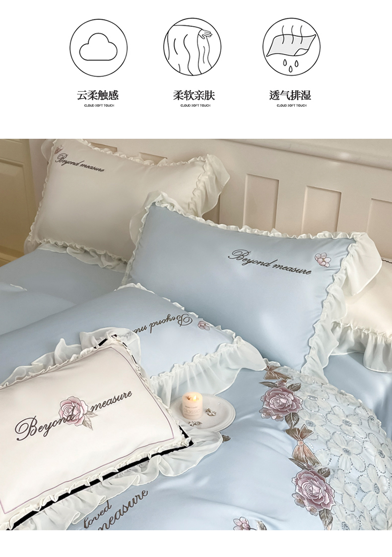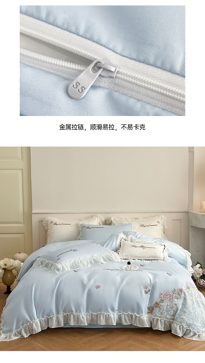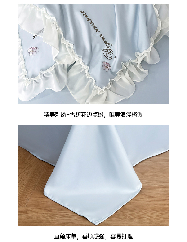 商品名称:七七家纺 2025新款冰丝刺绣款四件套幽兰系列 幽兰蓝