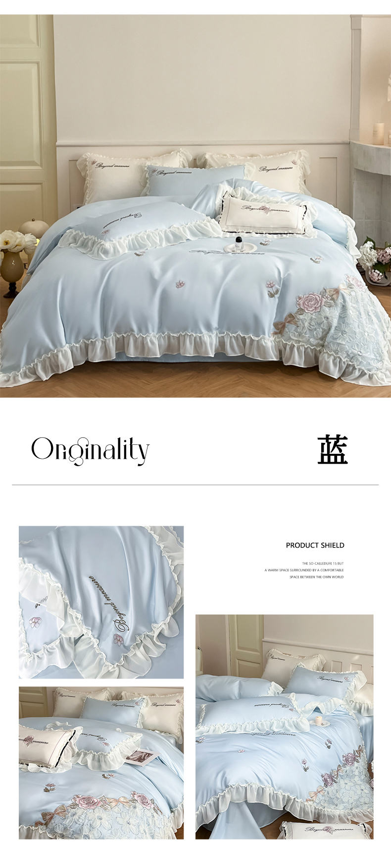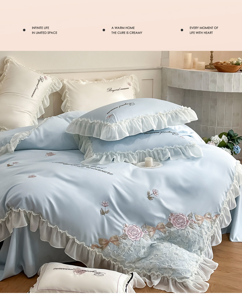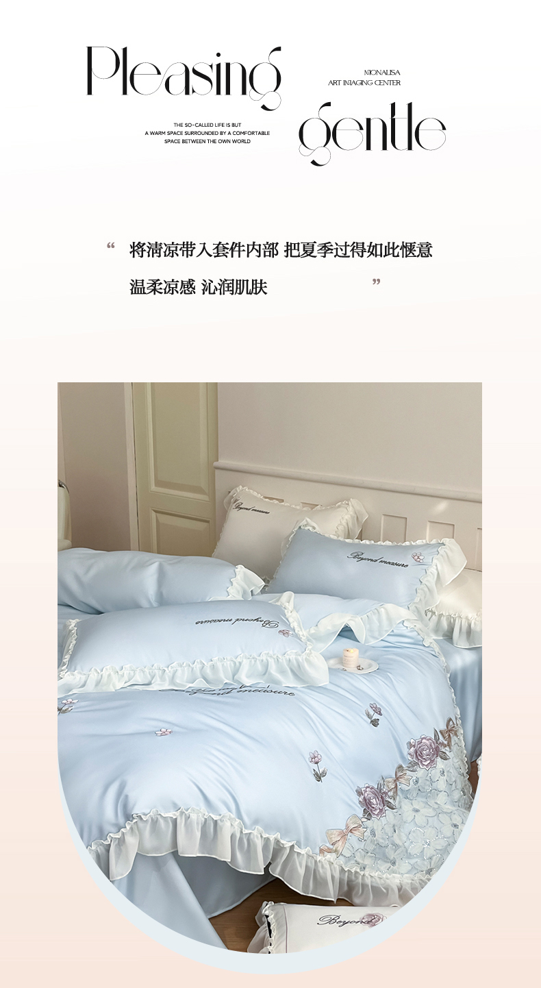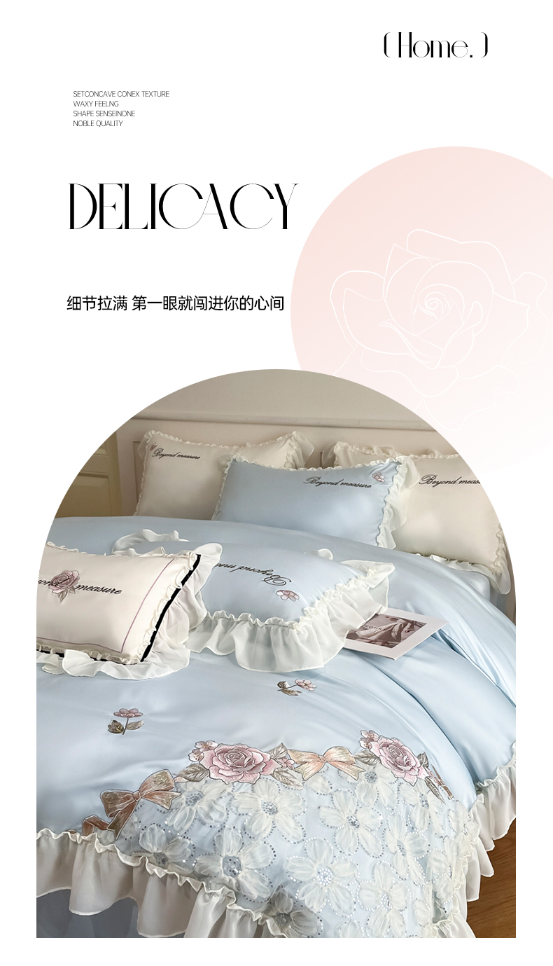 商品名称:七七家纺 2025新款冰丝刺绣款四件套幽兰系列 幽兰蓝
