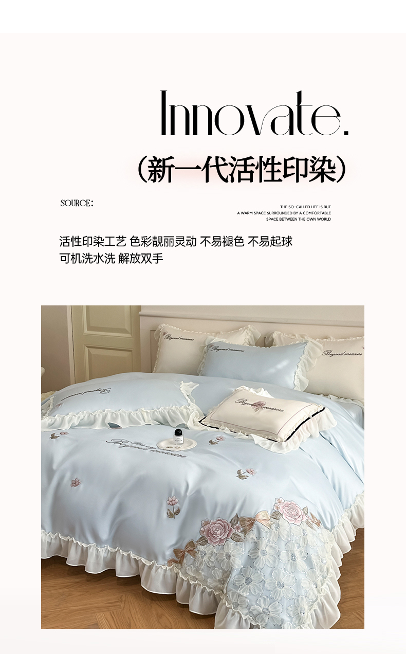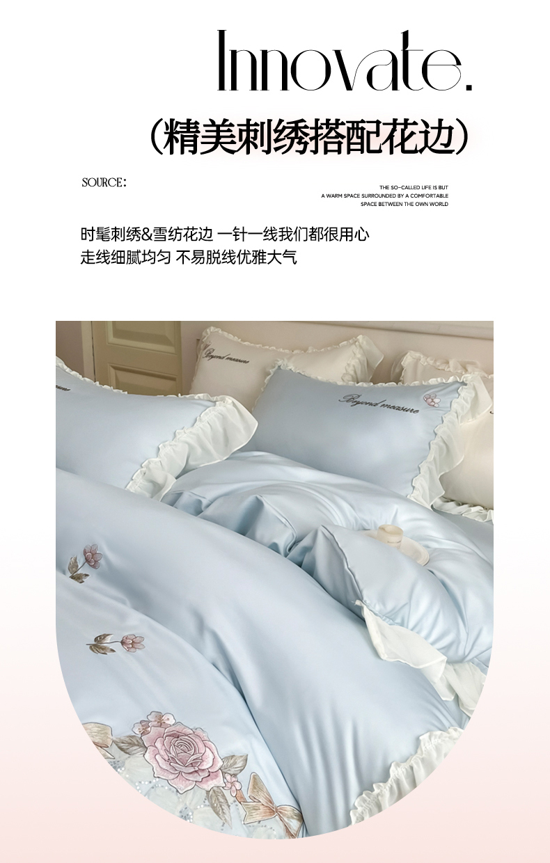 (总)七七家纺 2025新款水洗棉刺绣四件套梦见系列,梦见豆沙,梦见粉,梦见黄,梦见蓝,梦见紫