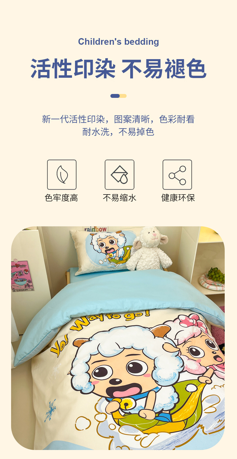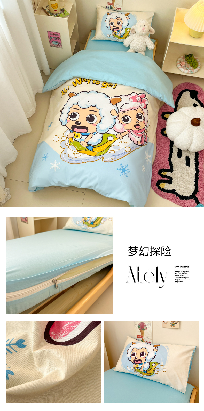 幼儿园尺寸: 被套 120*150,垫套 60.*135, 枕套30*50一个