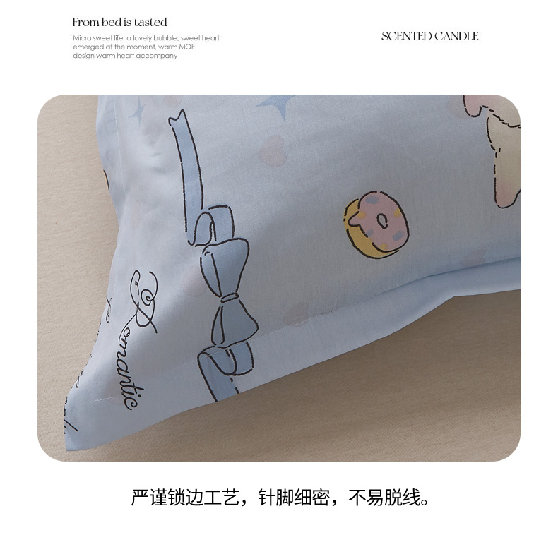 商品名称:翎盈家纺 2025新款纯棉小清新双人枕套 奶油阿布-蓝
